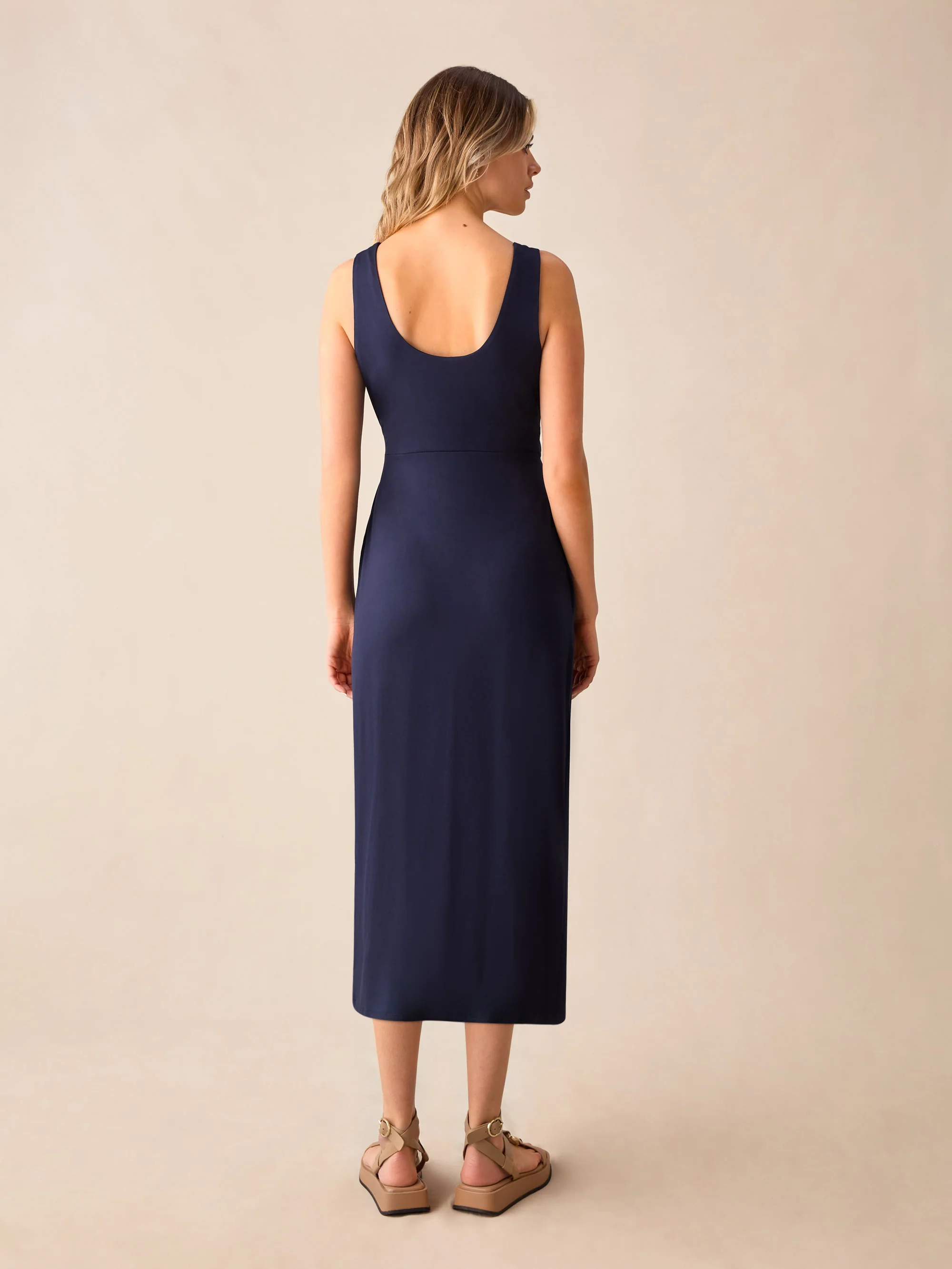Navy Jersey Tie Waist Dress