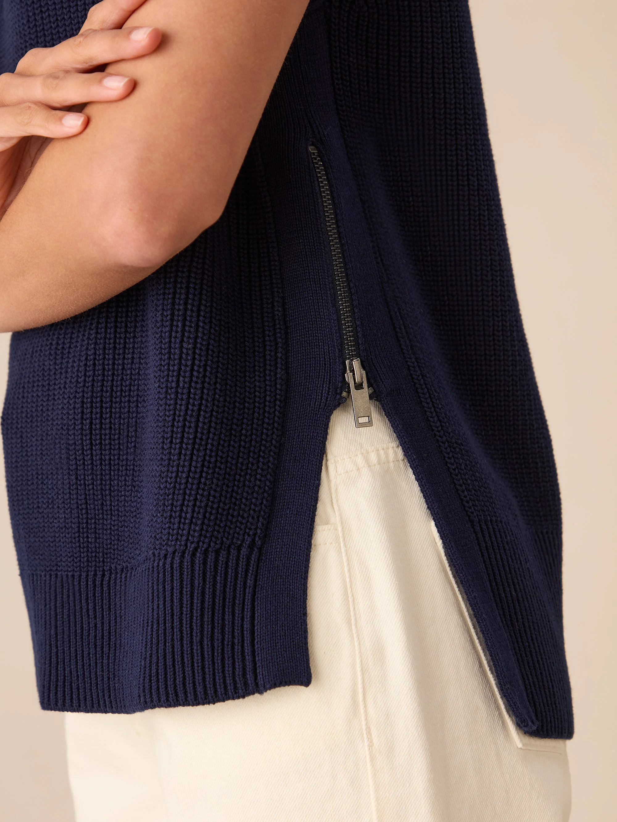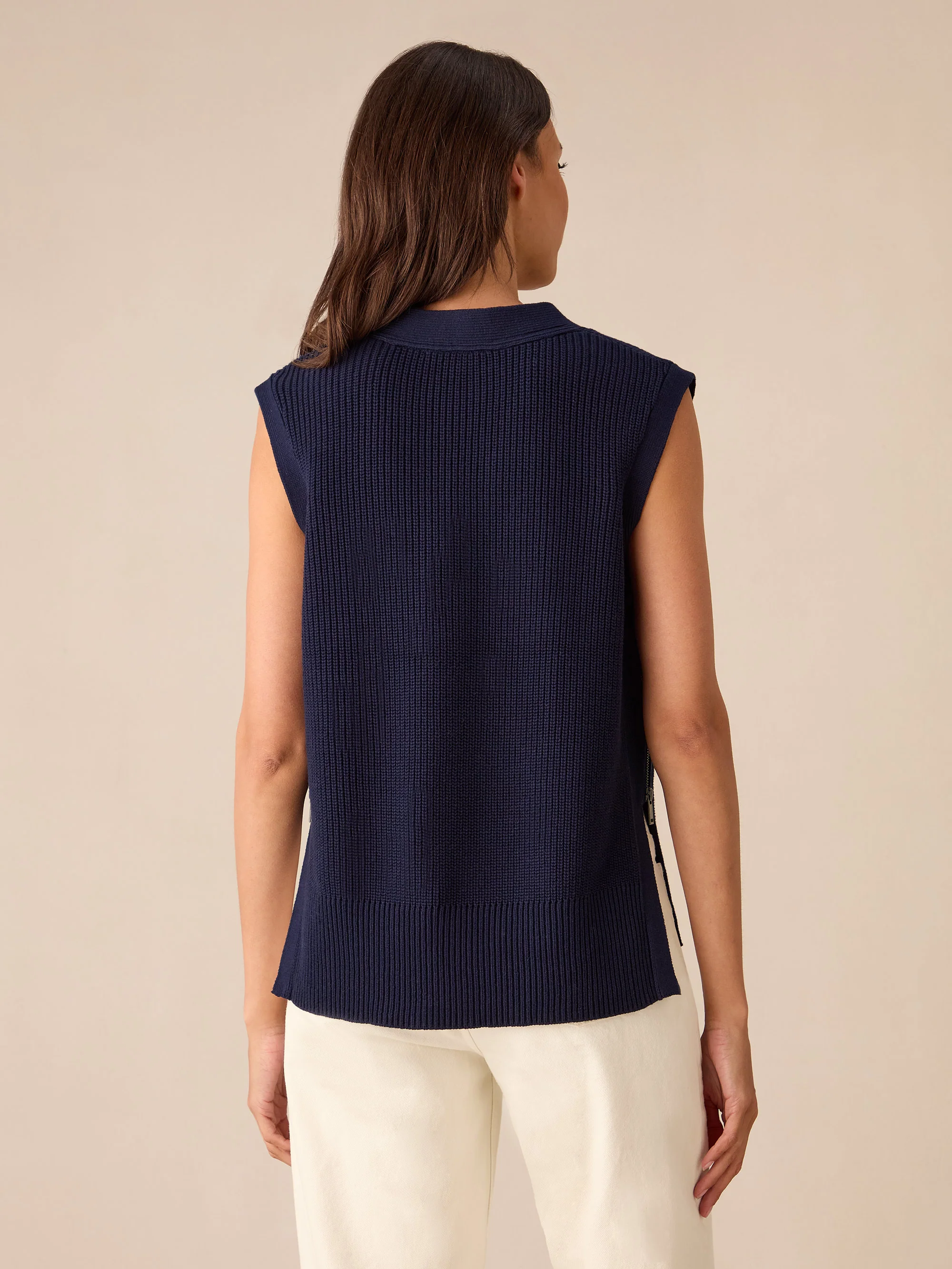 Navy Side Zip Knitted Vest
