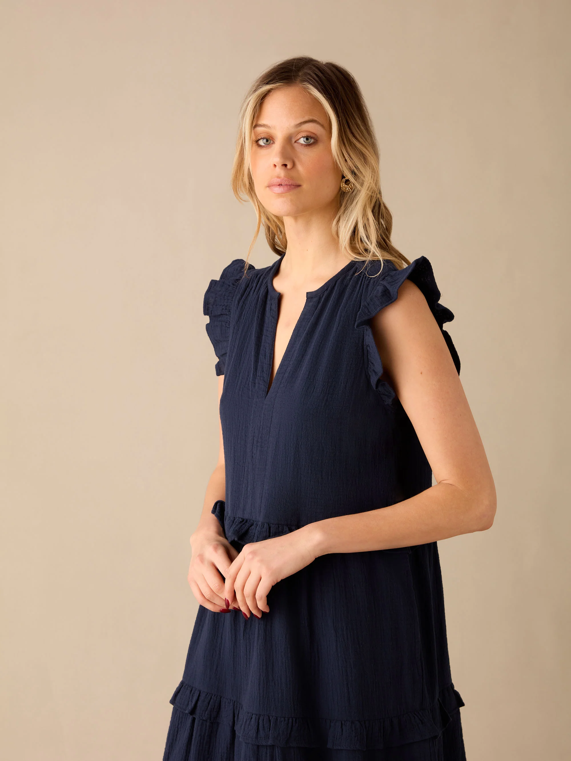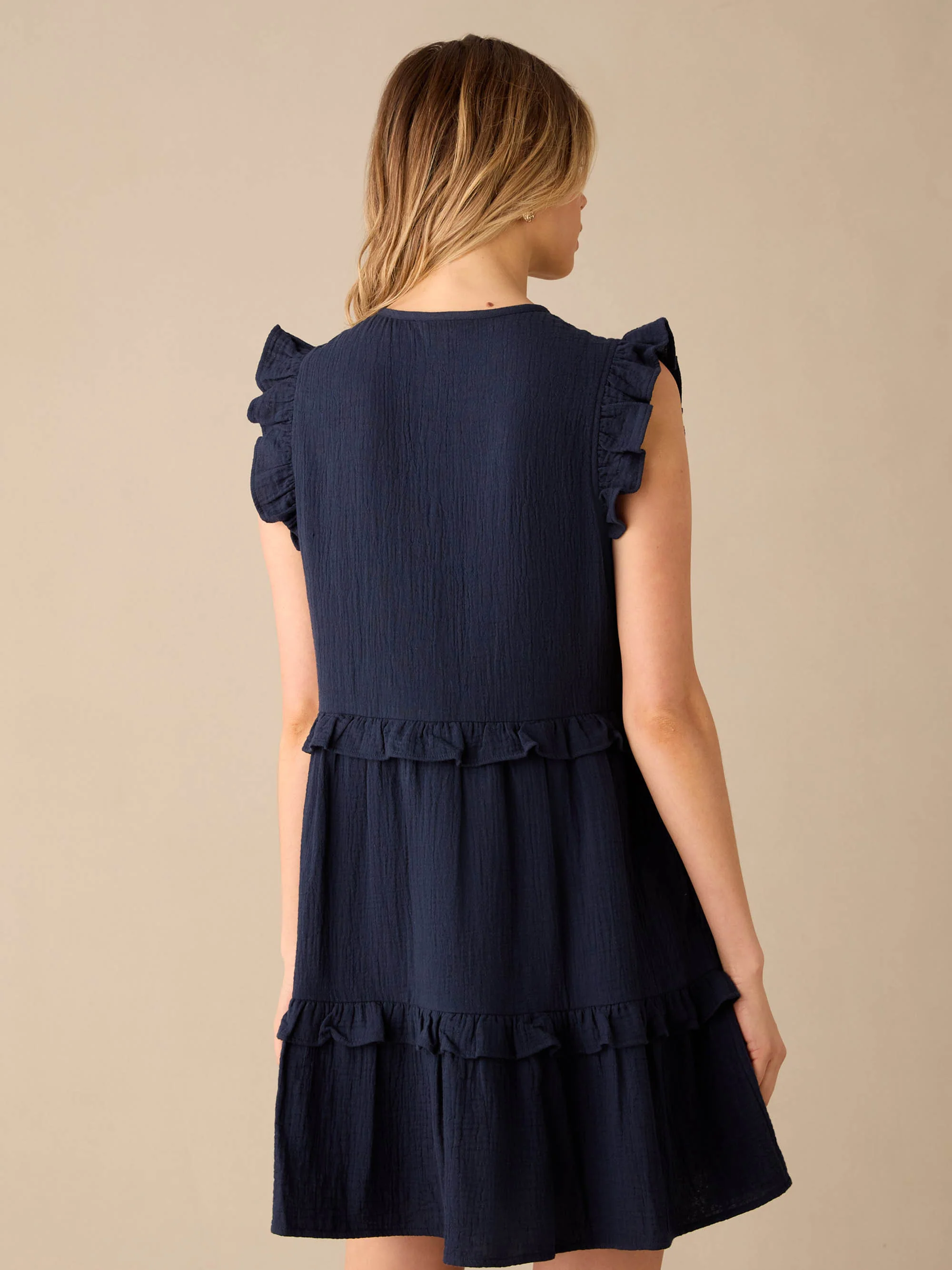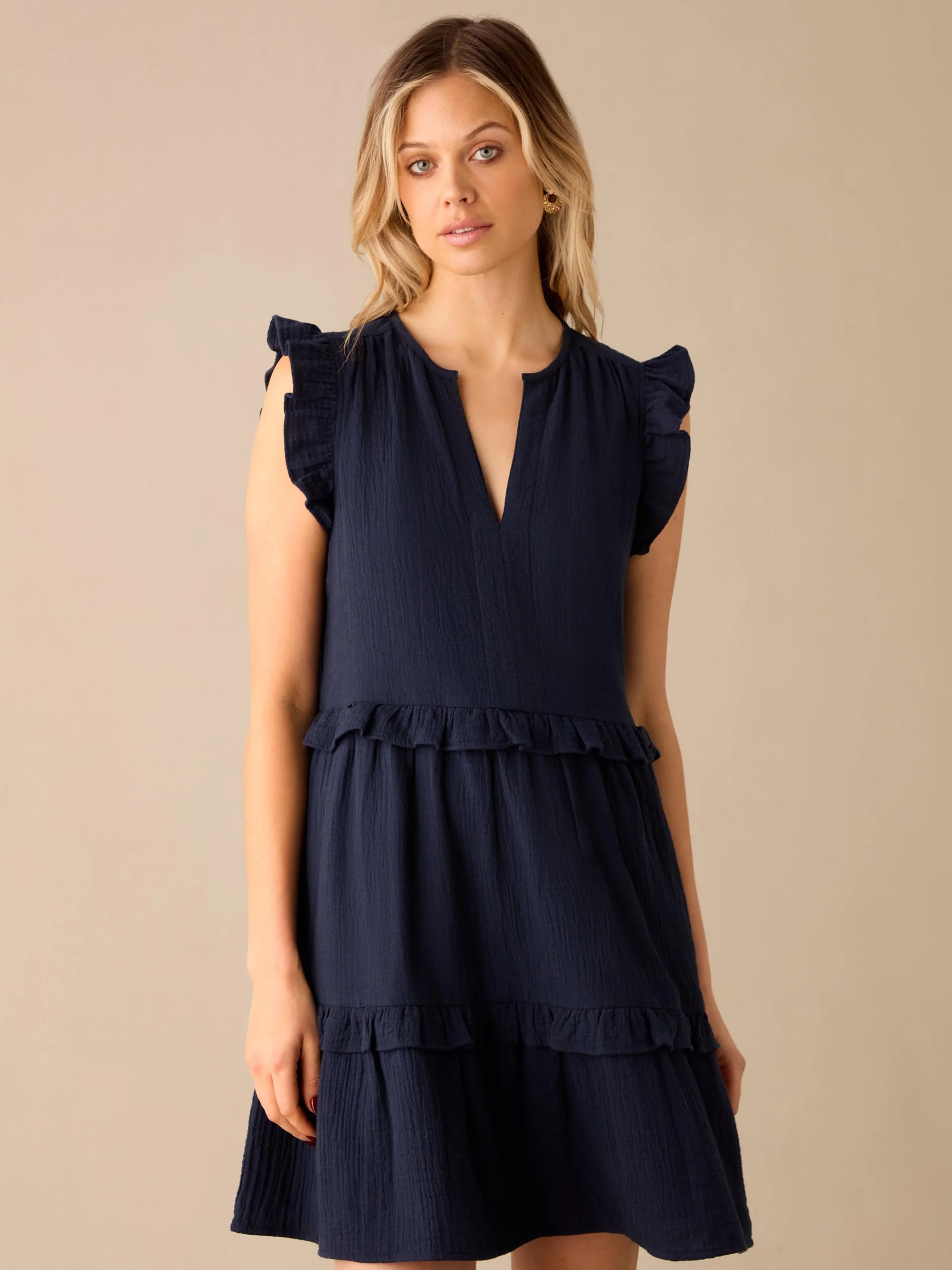 Navy Frill Detail Cheesecloth Dress