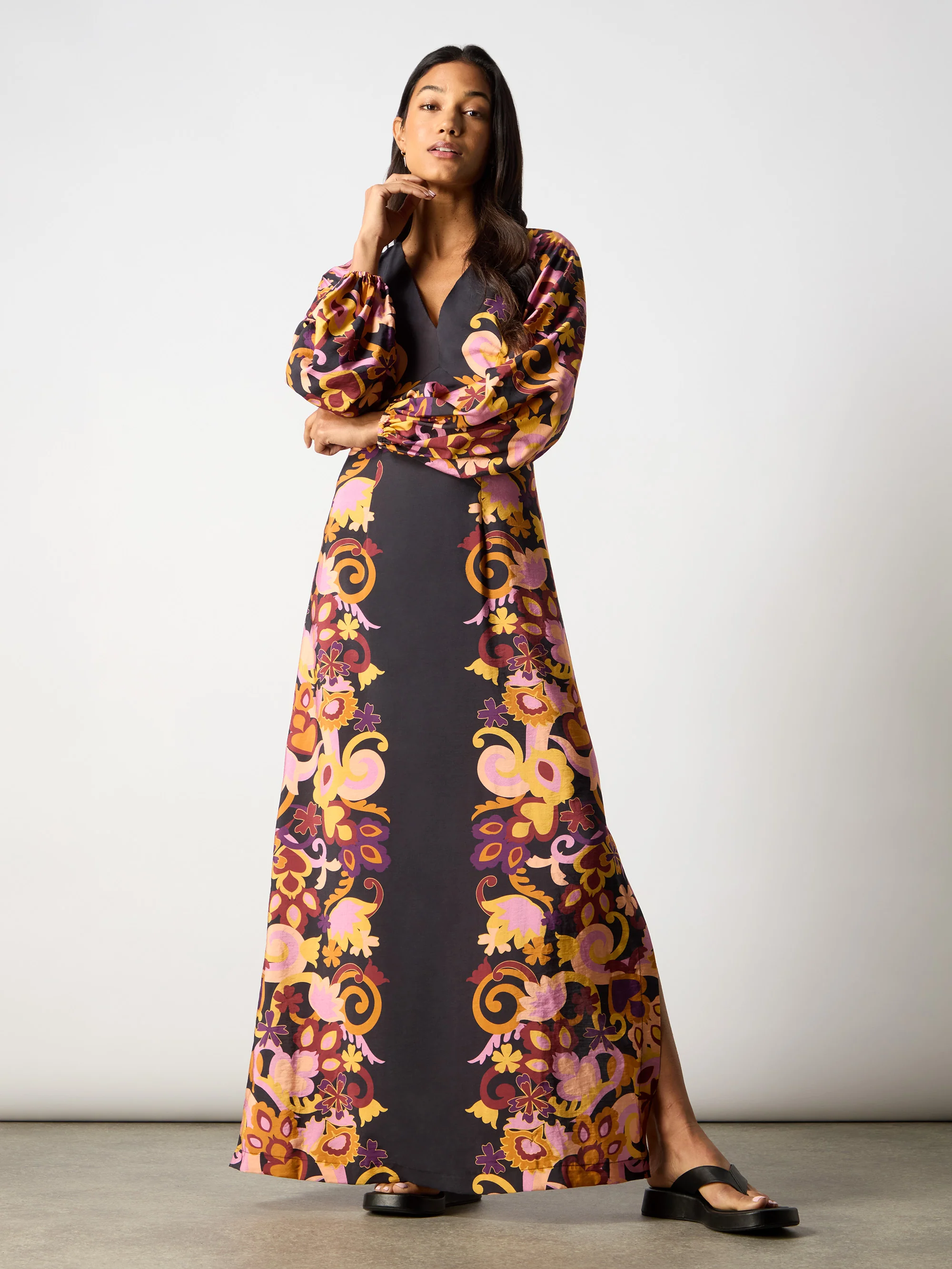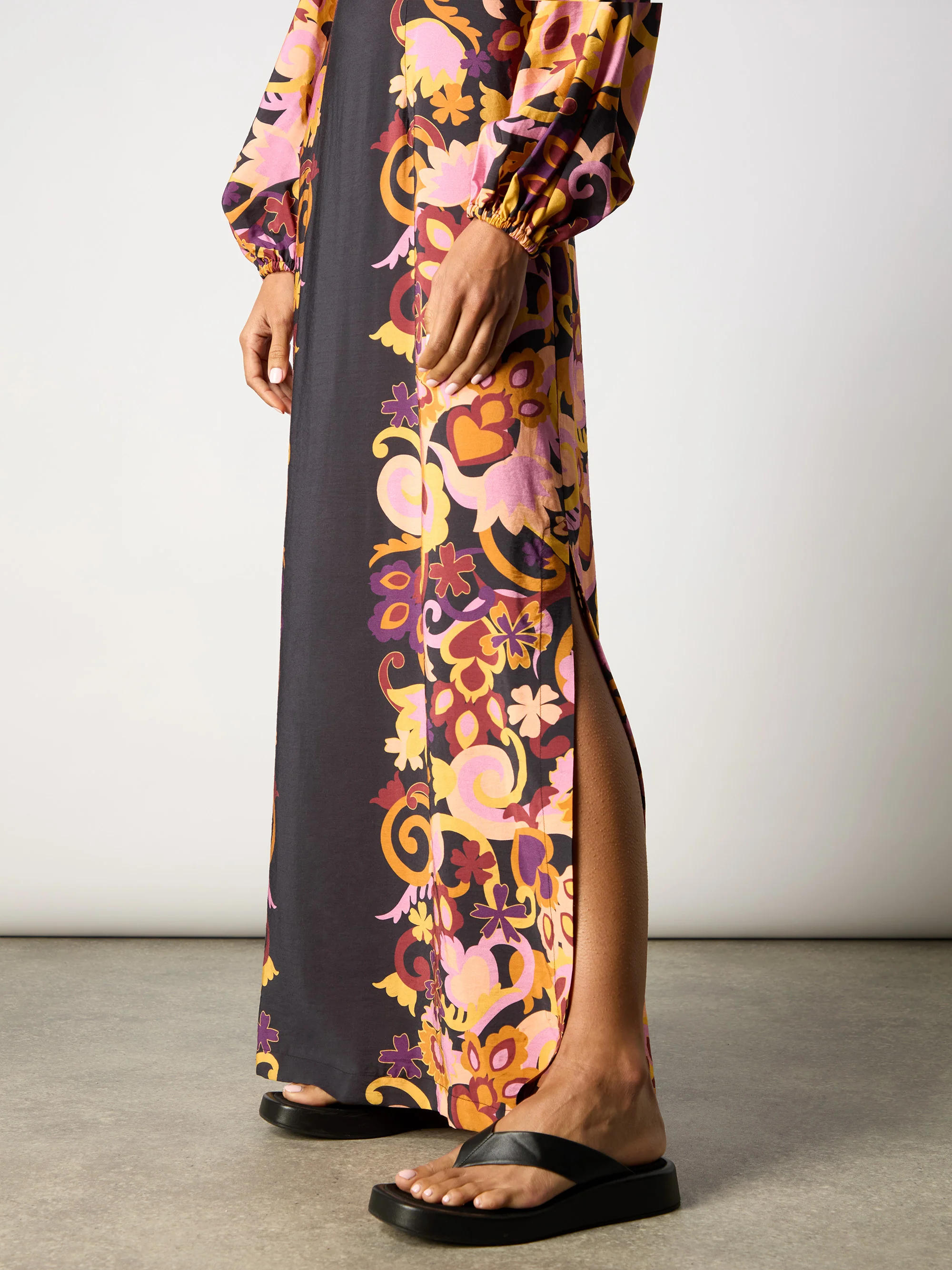 Multi Paisley Print Split Leg Dress