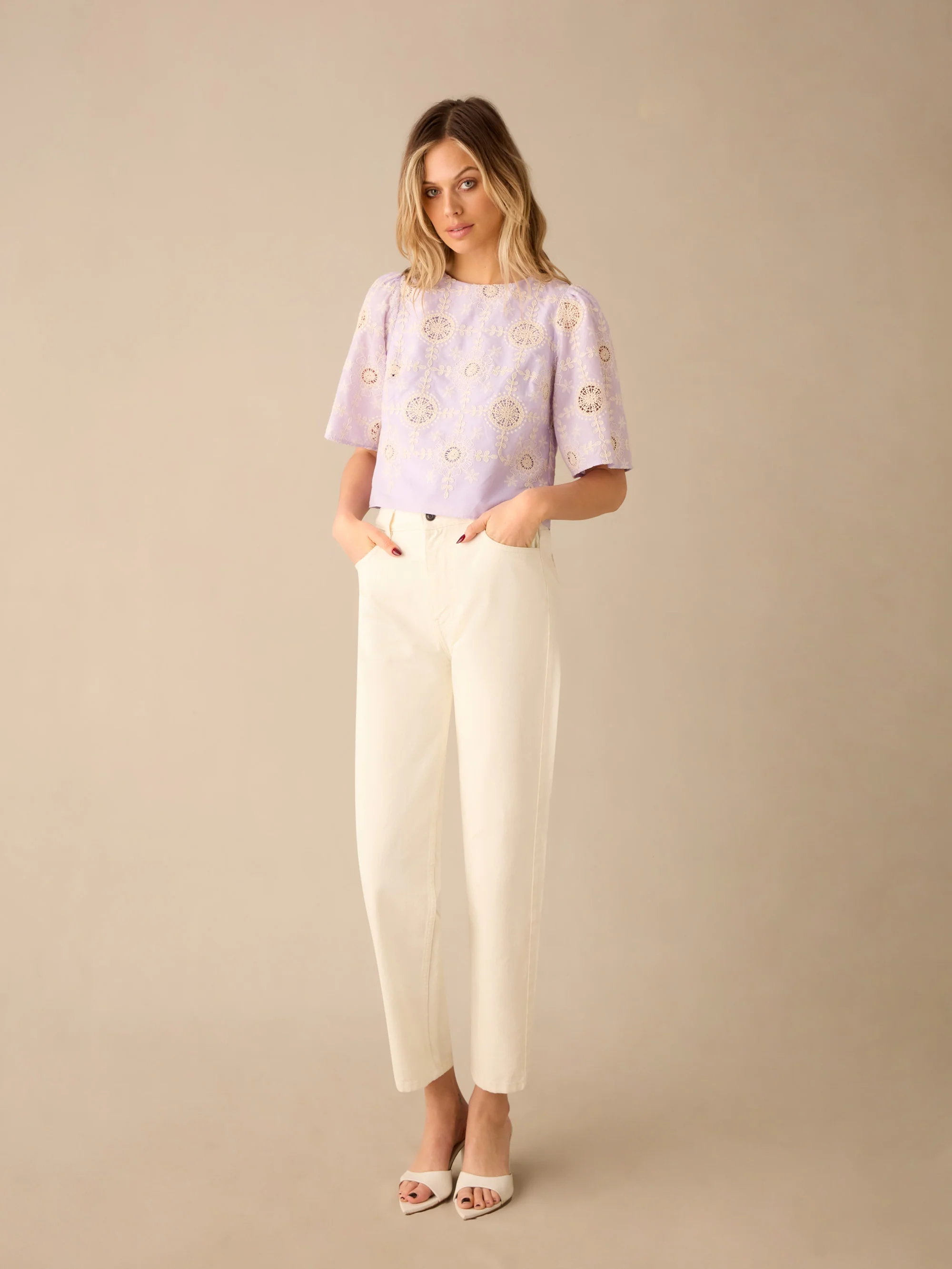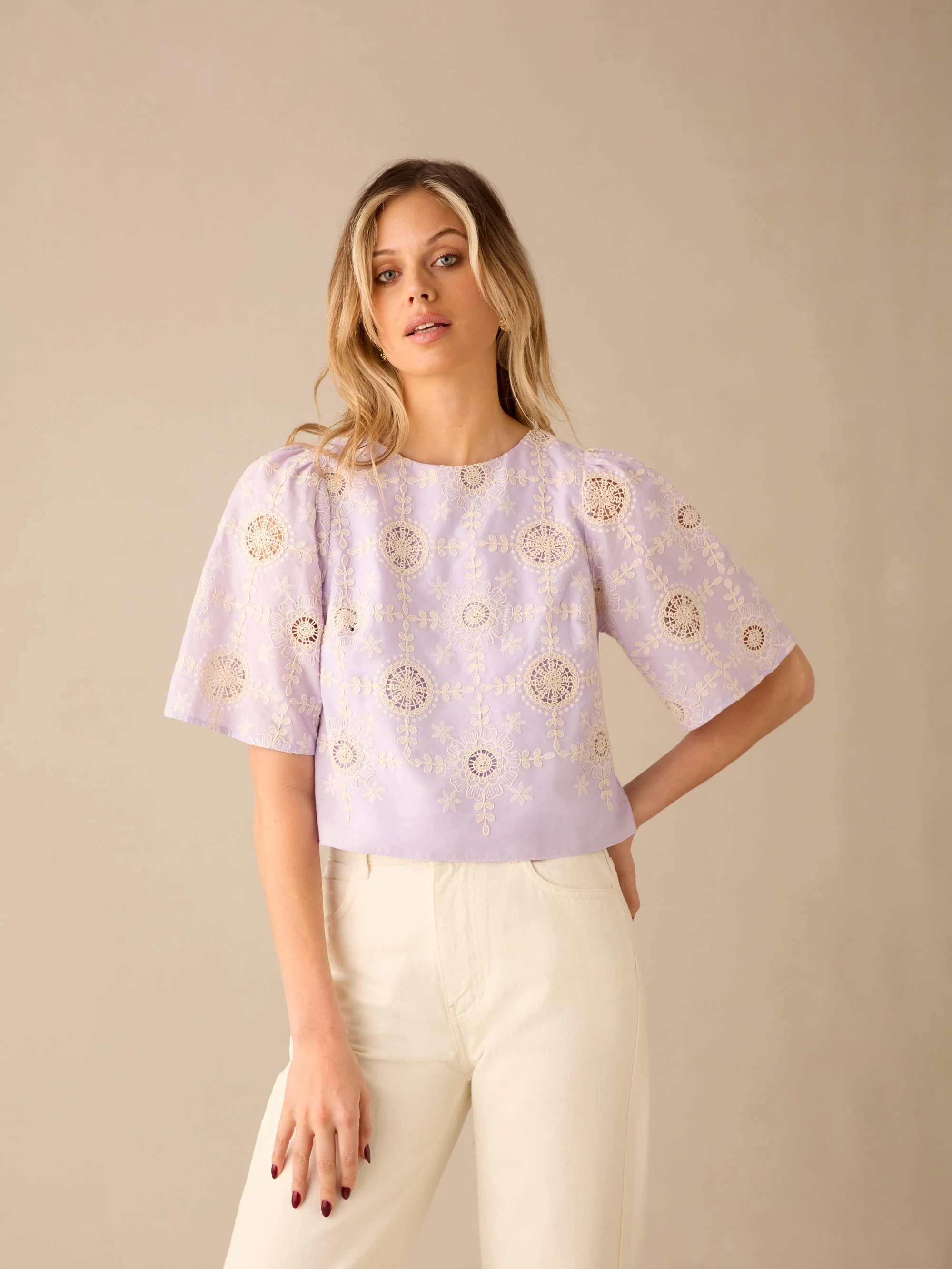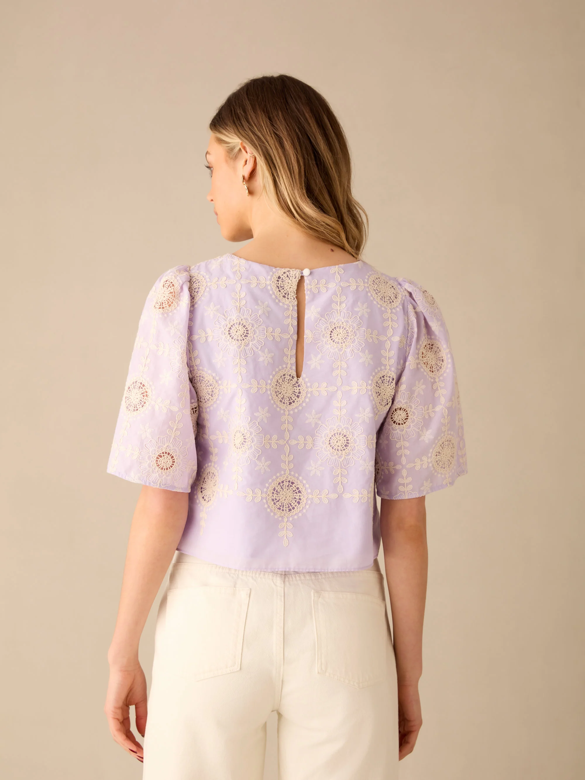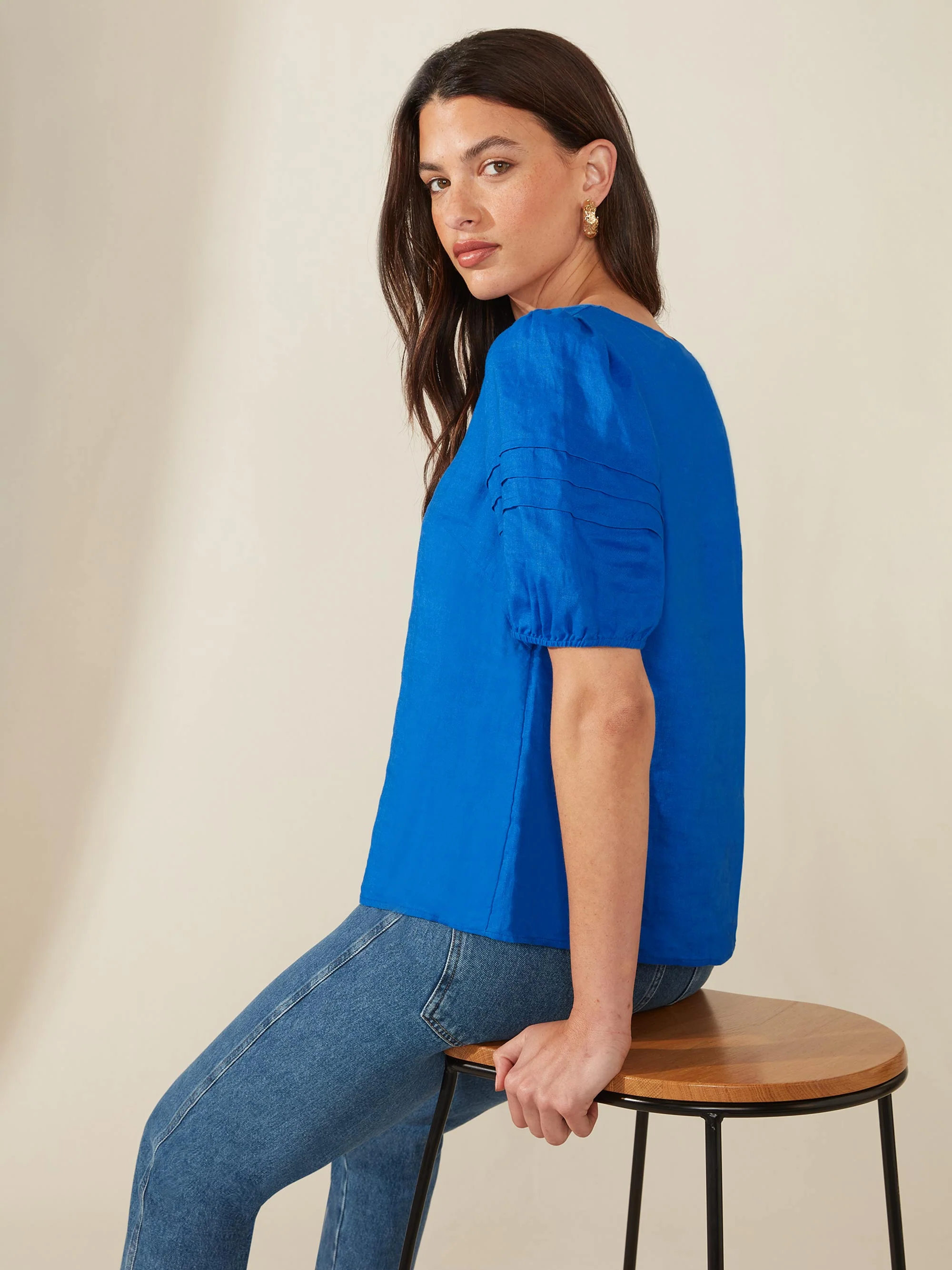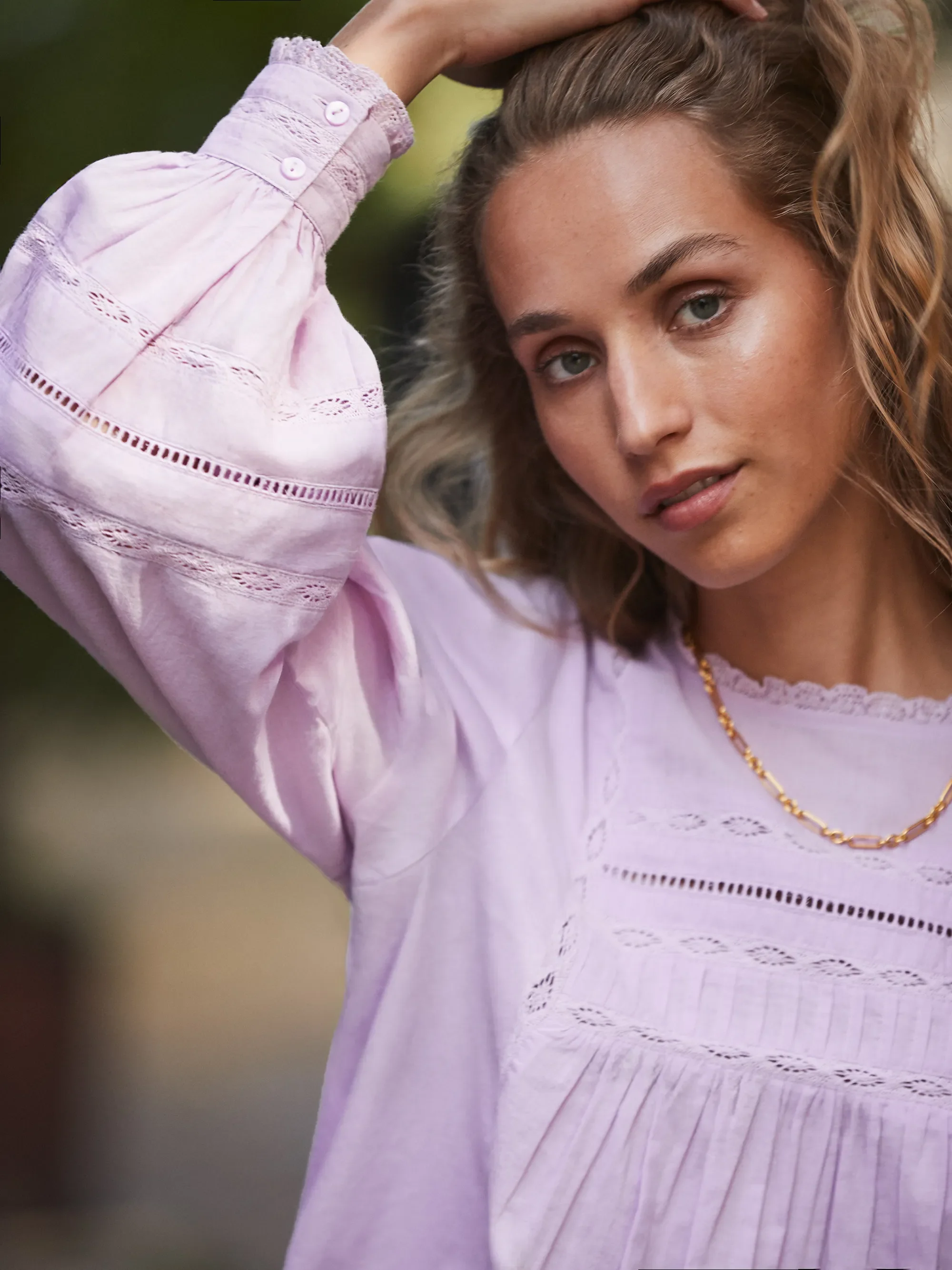Magenta Gathered-Sleeve Cotton Voile Midi Dress