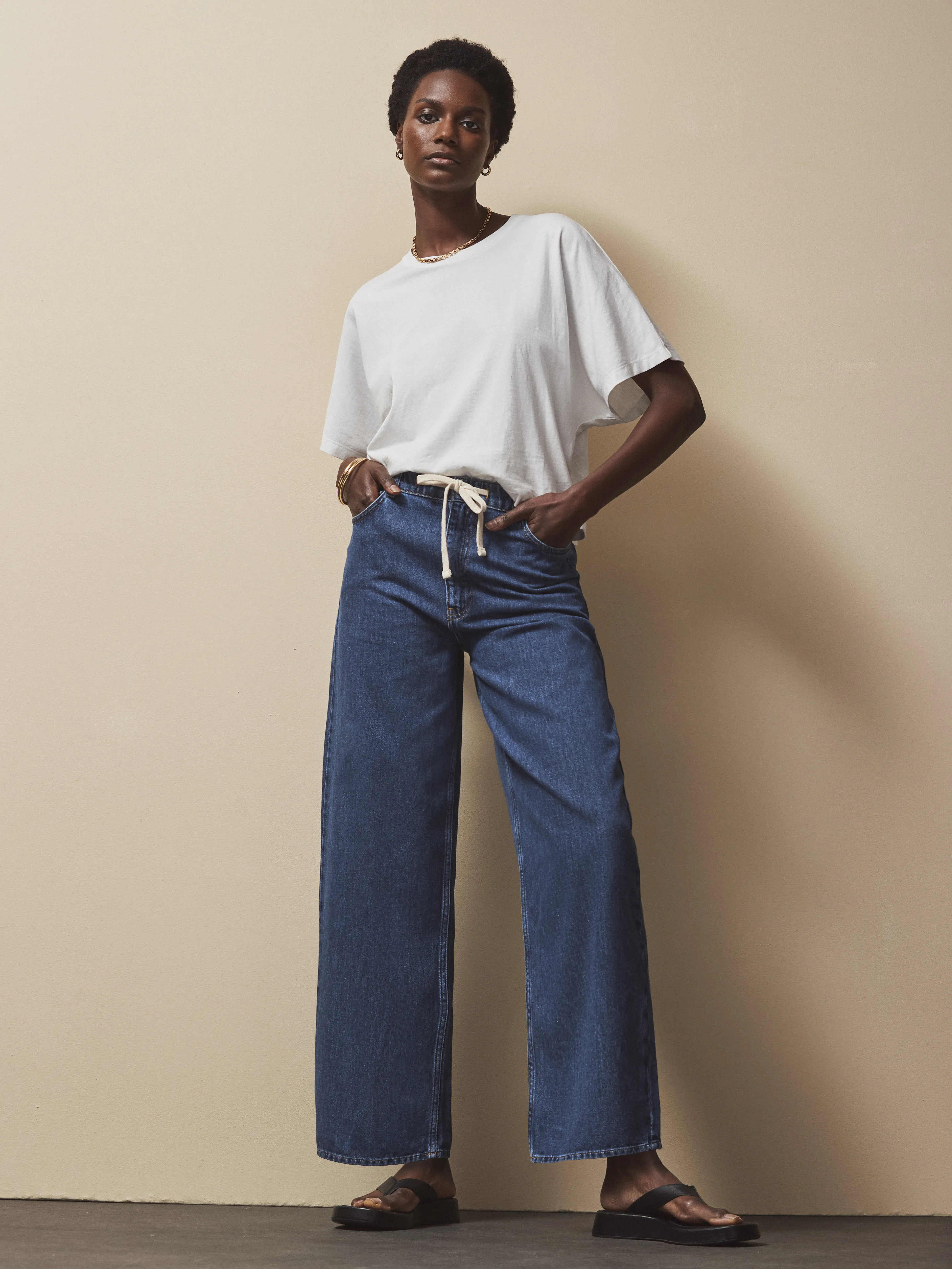 Blue Drawstring-Waist Jeans