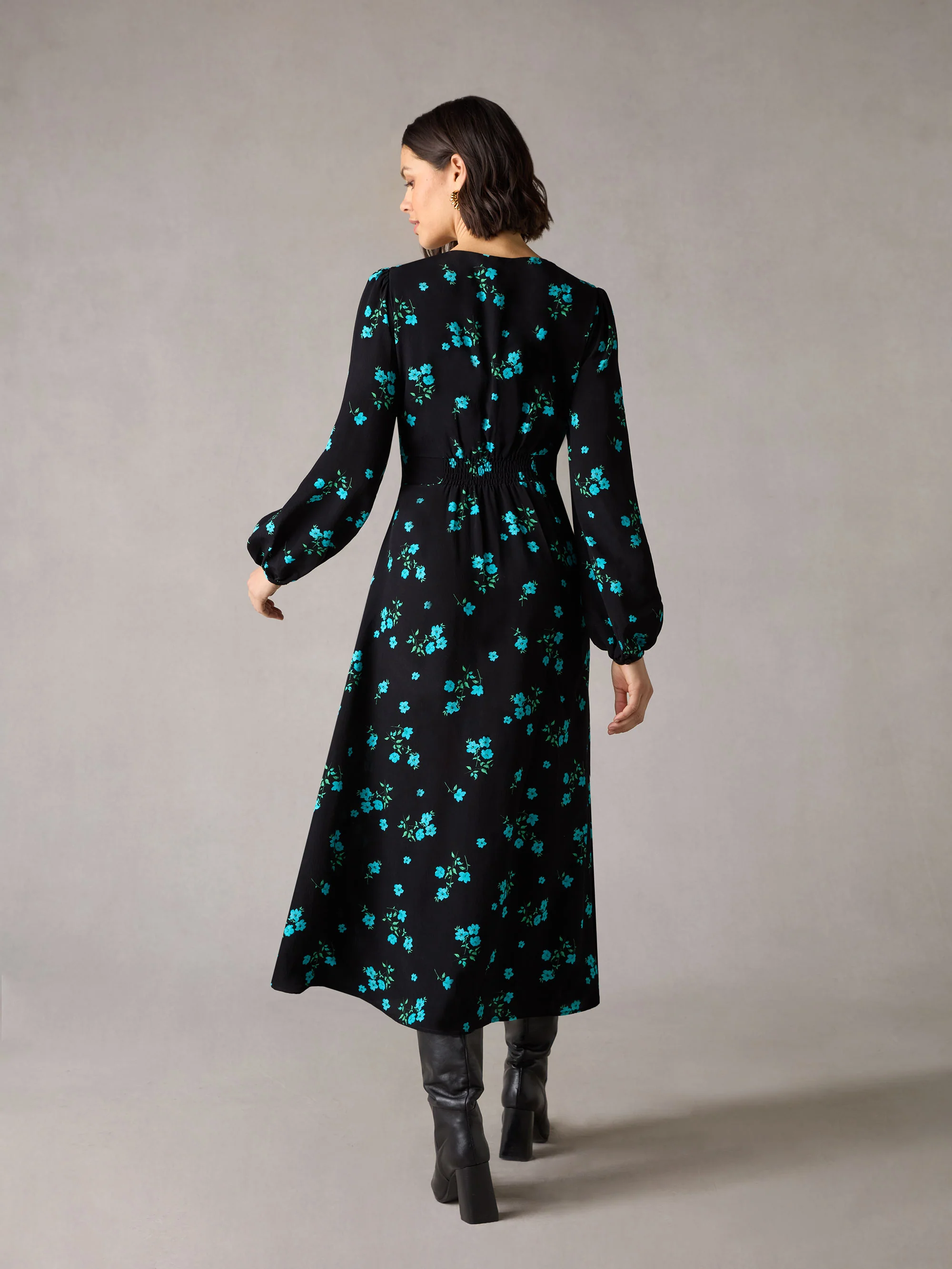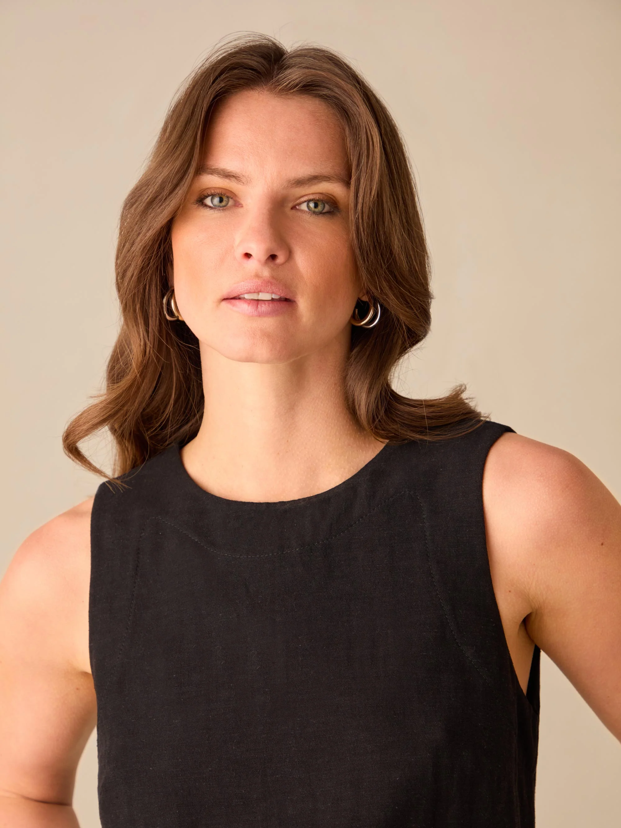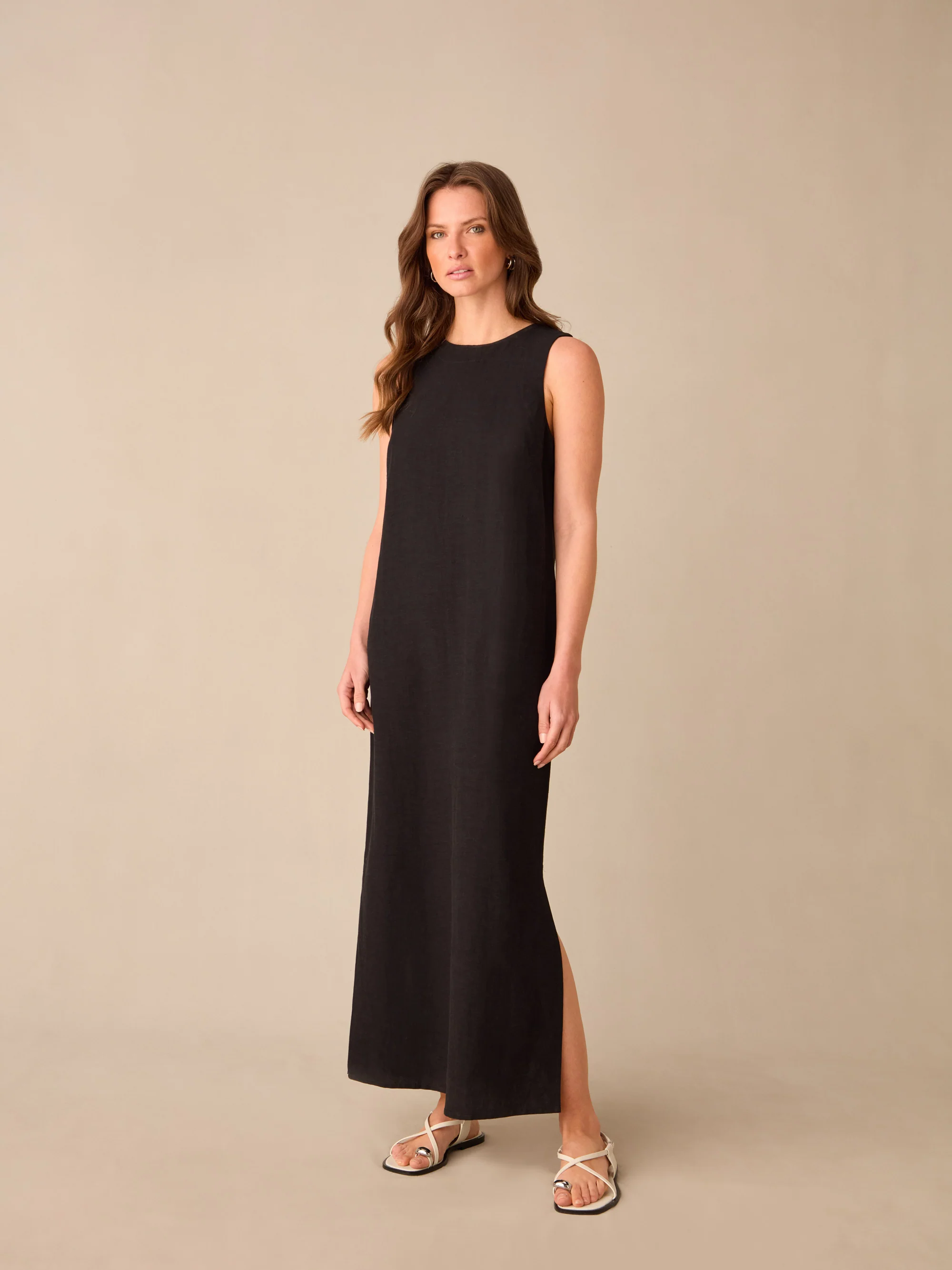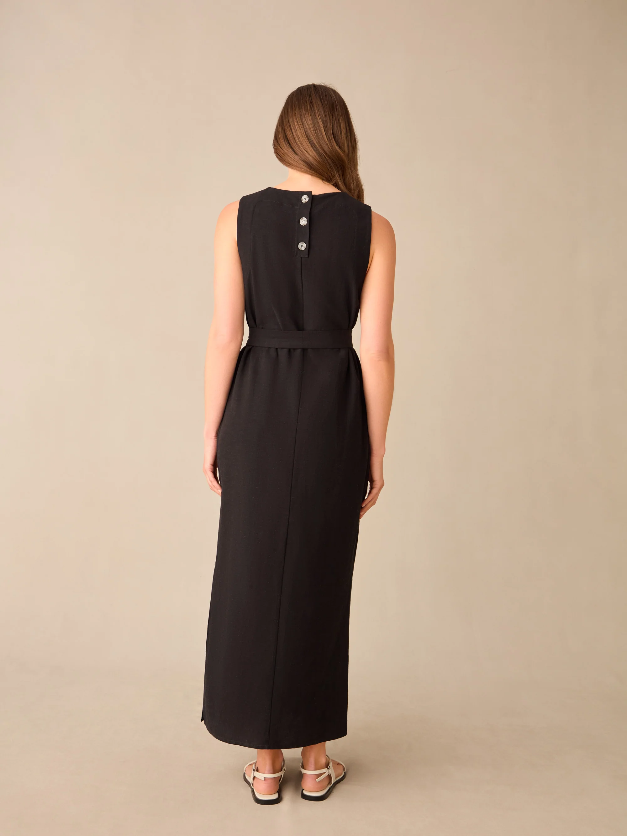 Petite Black Linen-blend Tie Waist Column Midi Dress