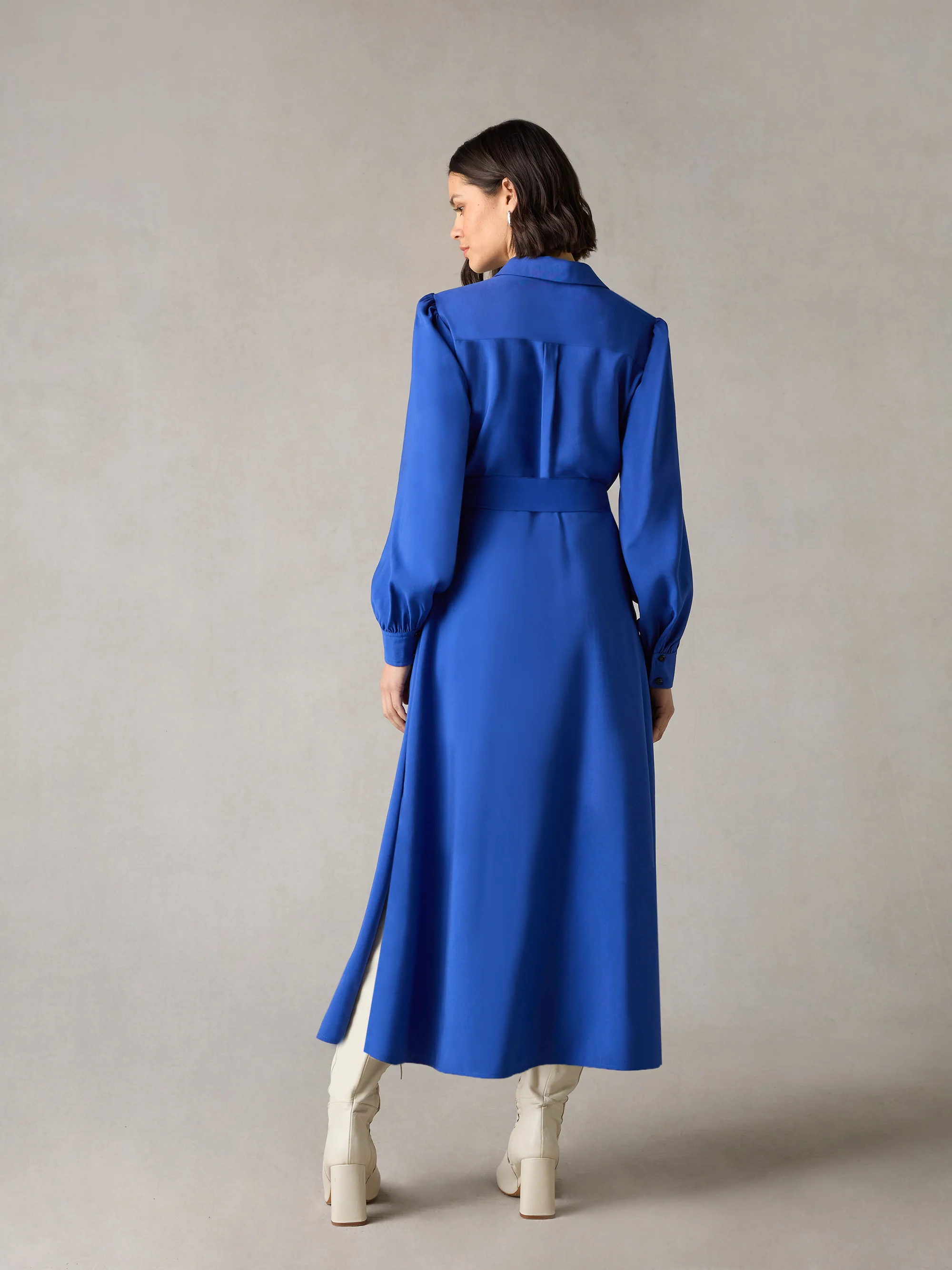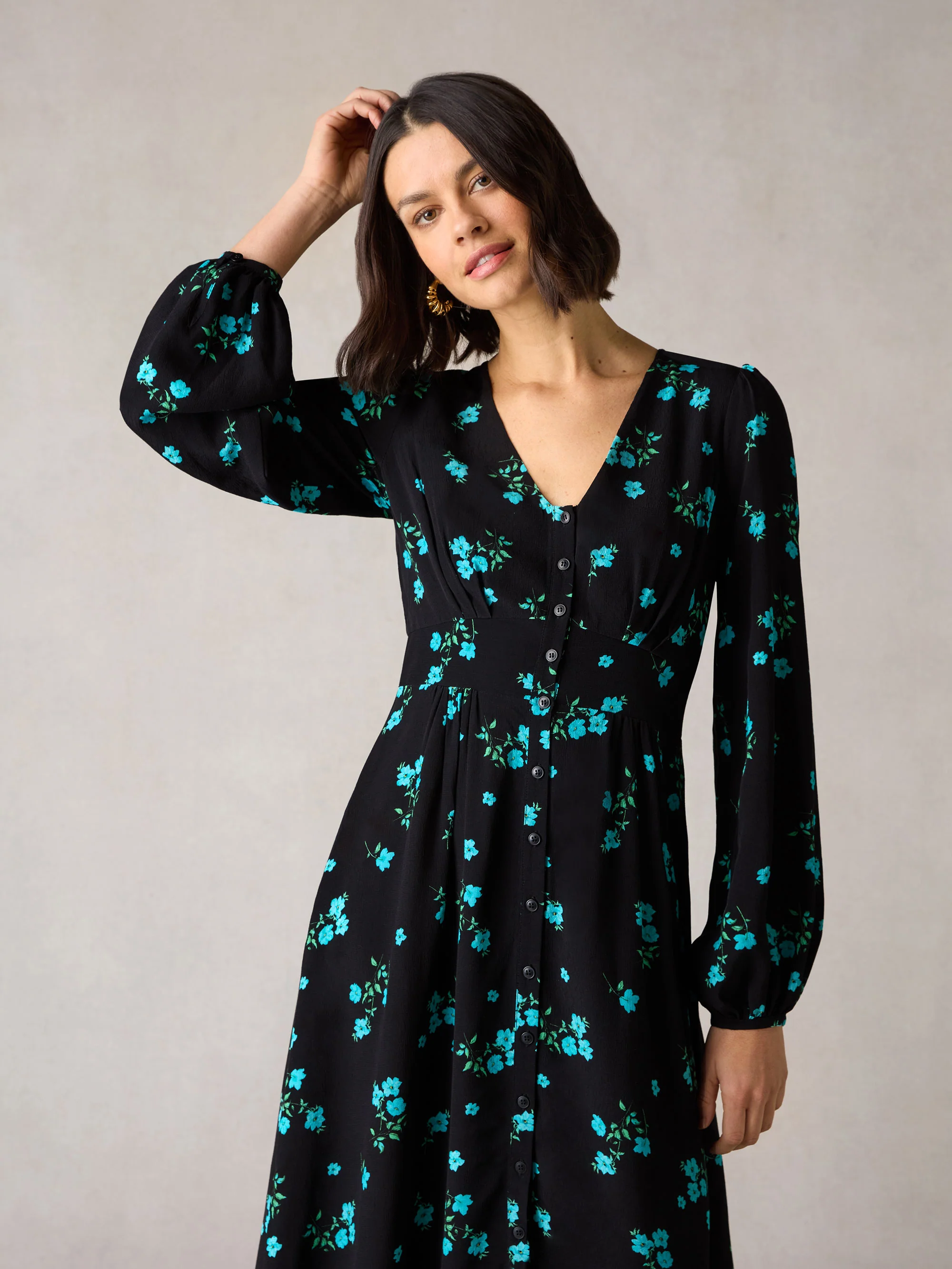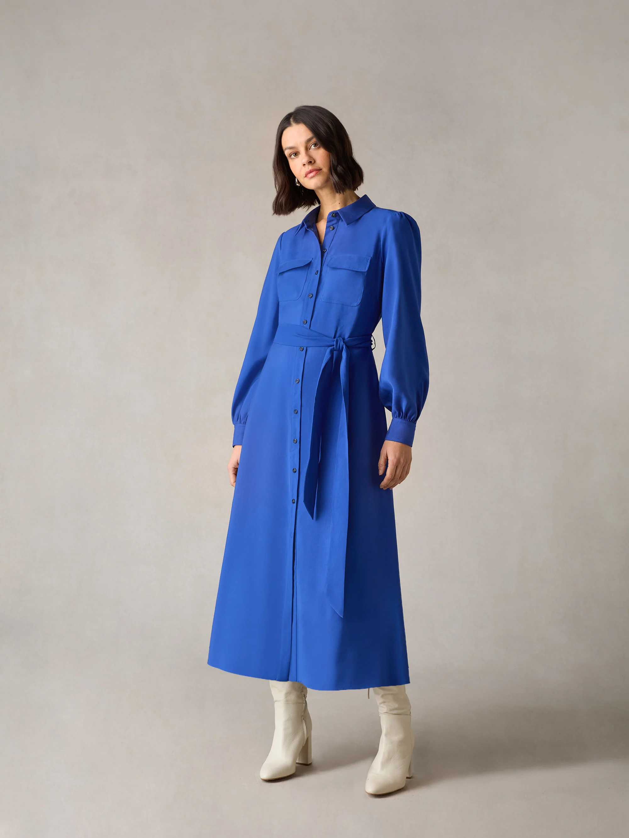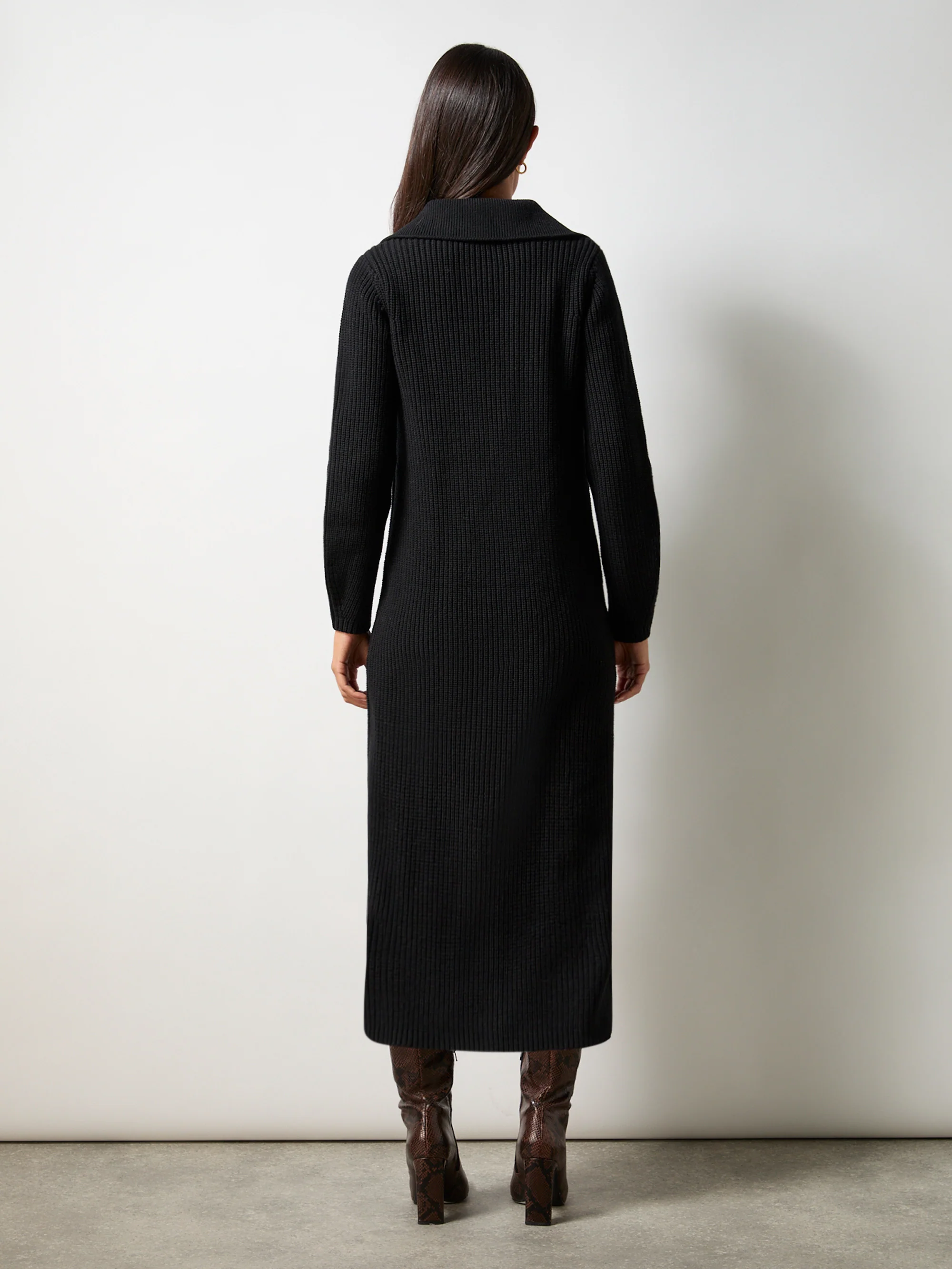 Petite Black Linen-blend Tie Waist Column Midi Dress