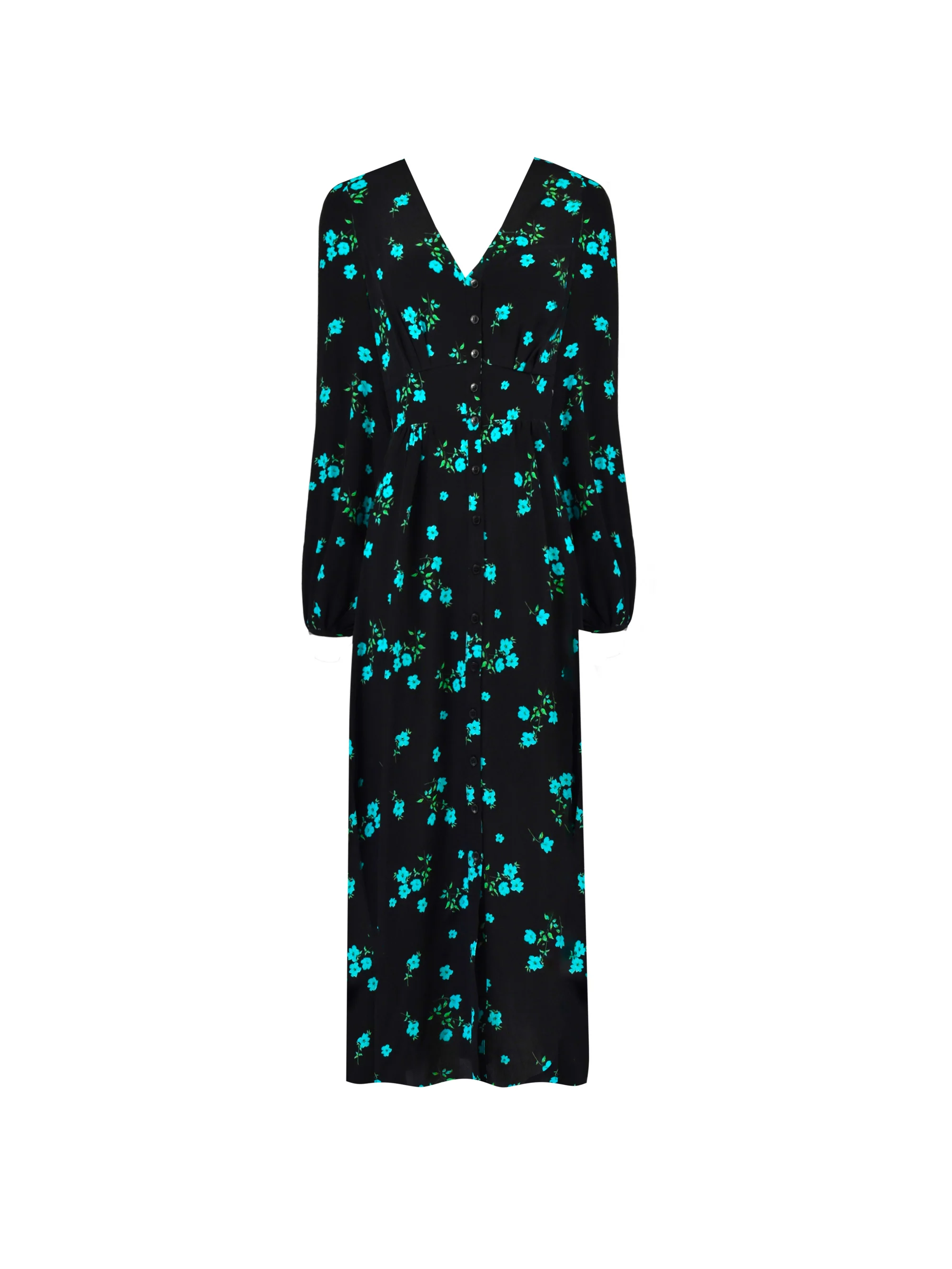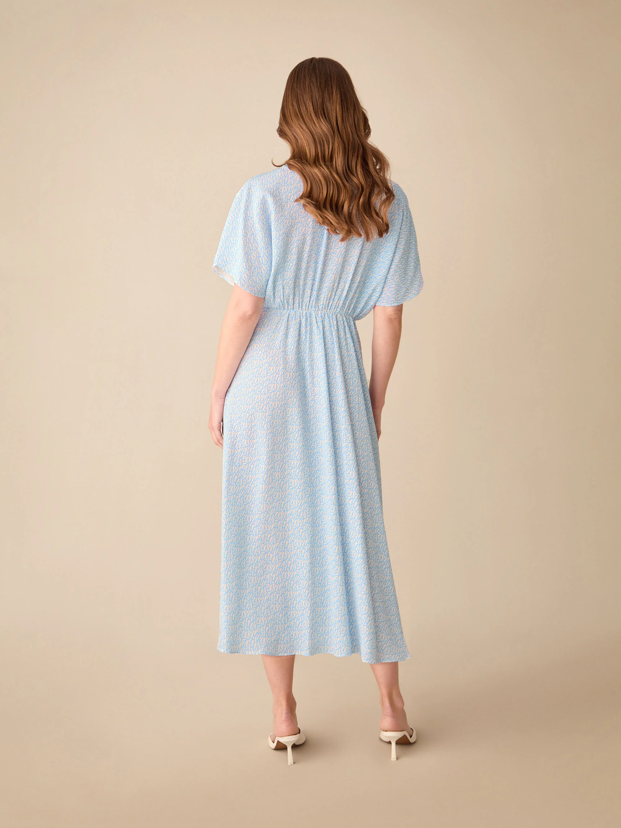 Petite Blue Leaf-Print Keyhole-Detail Cami Dress