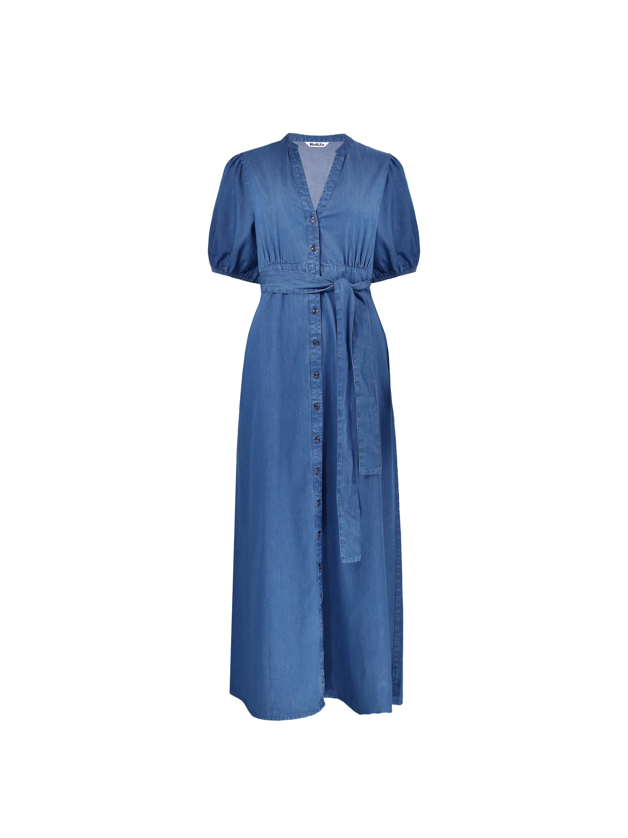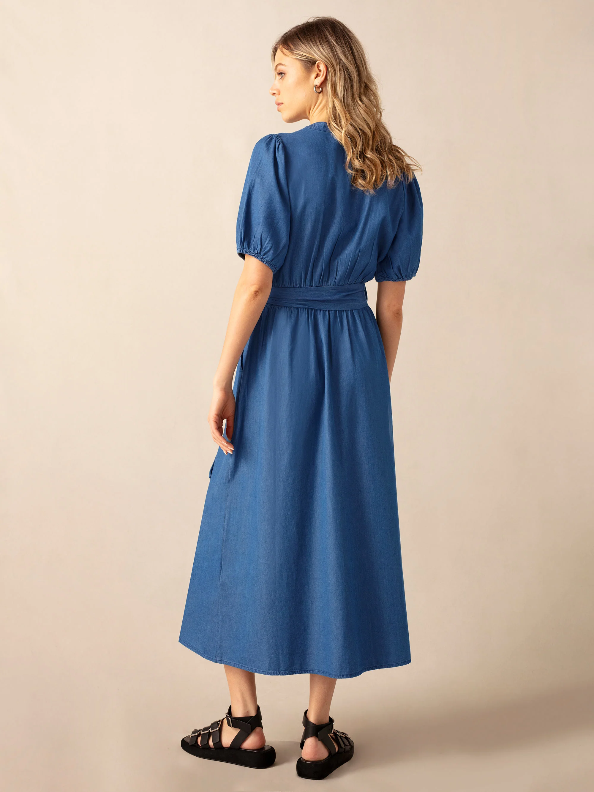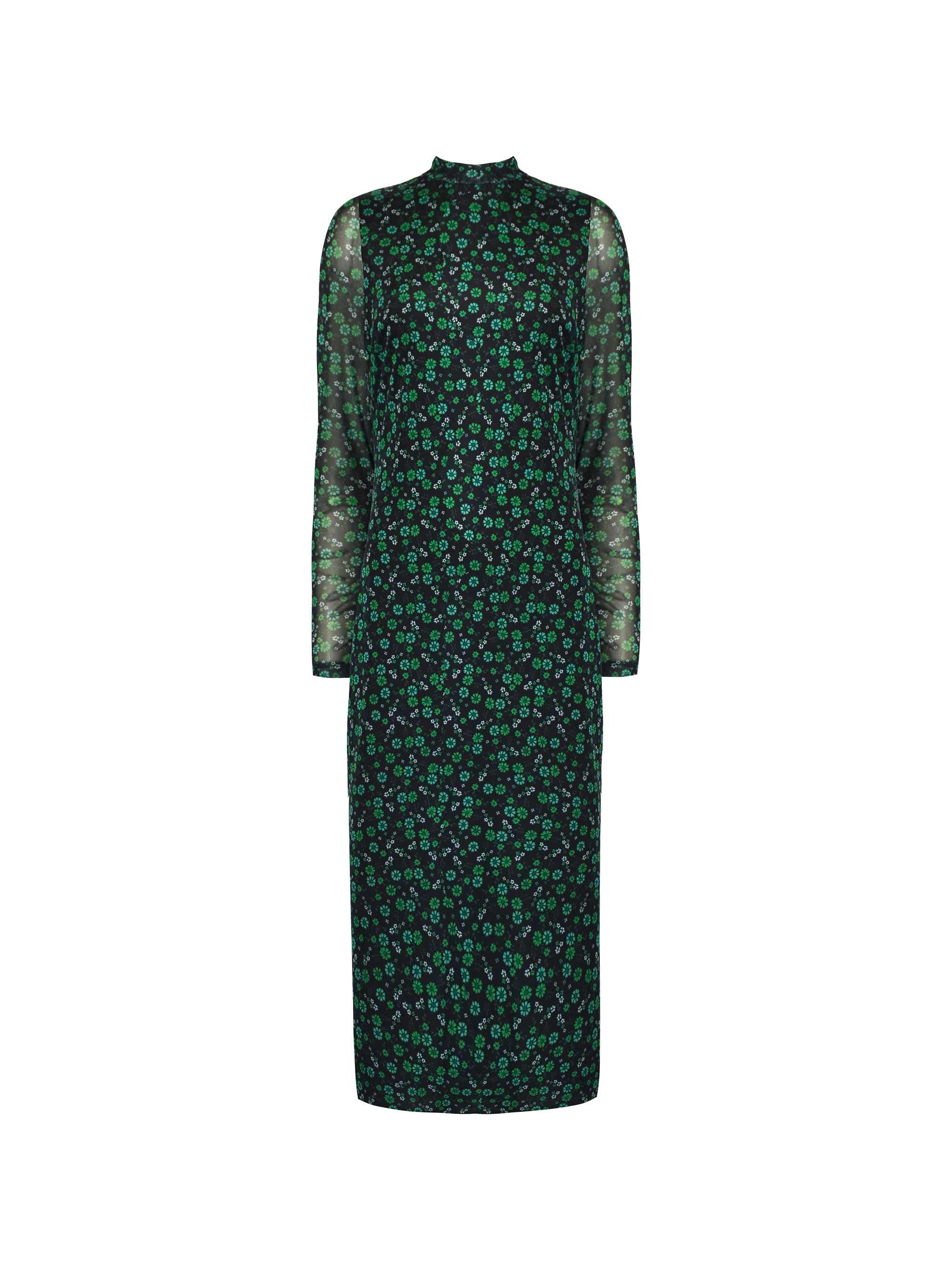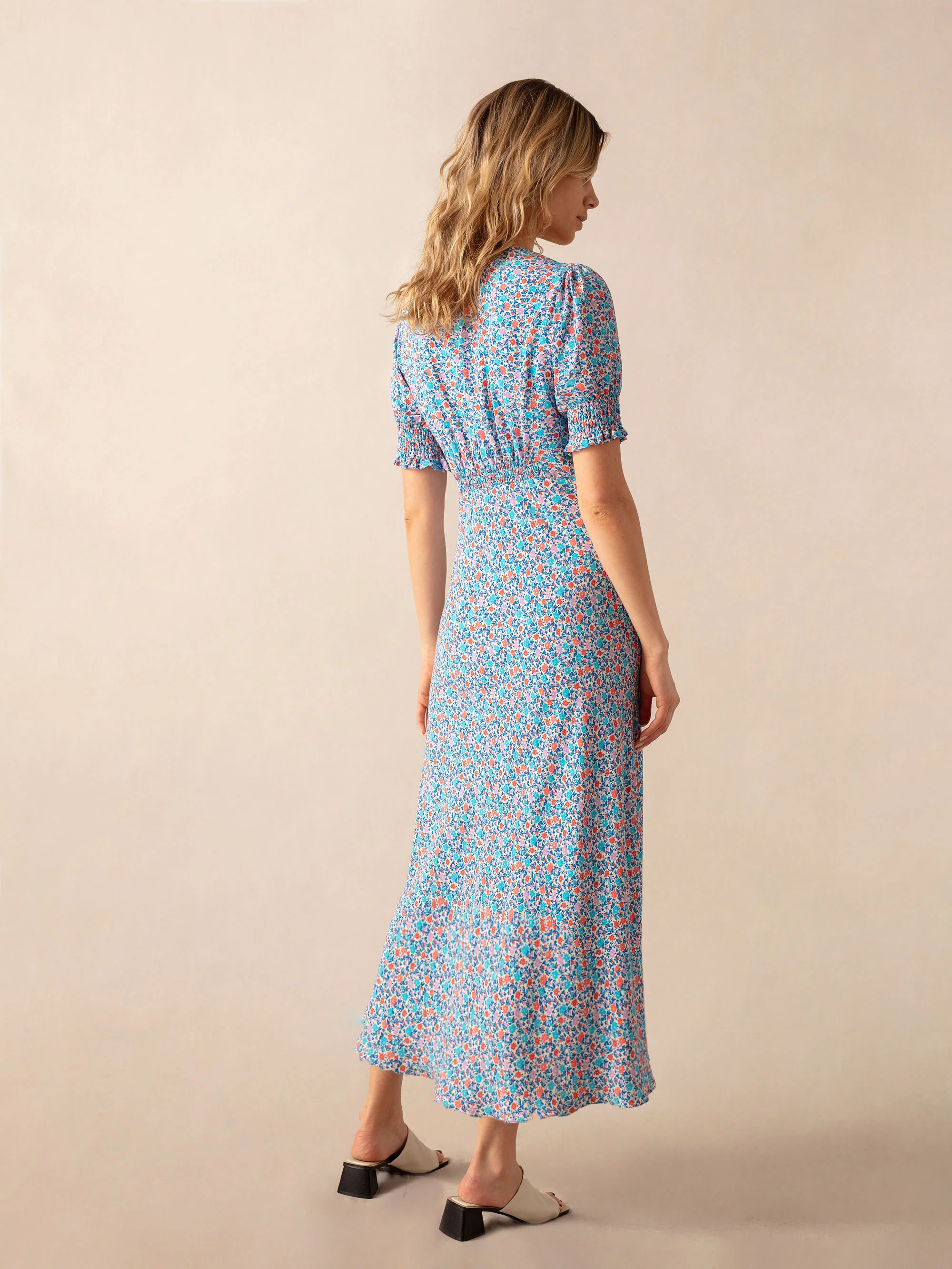 Multi Ditsy Print Shirred Cuff Midi Dress