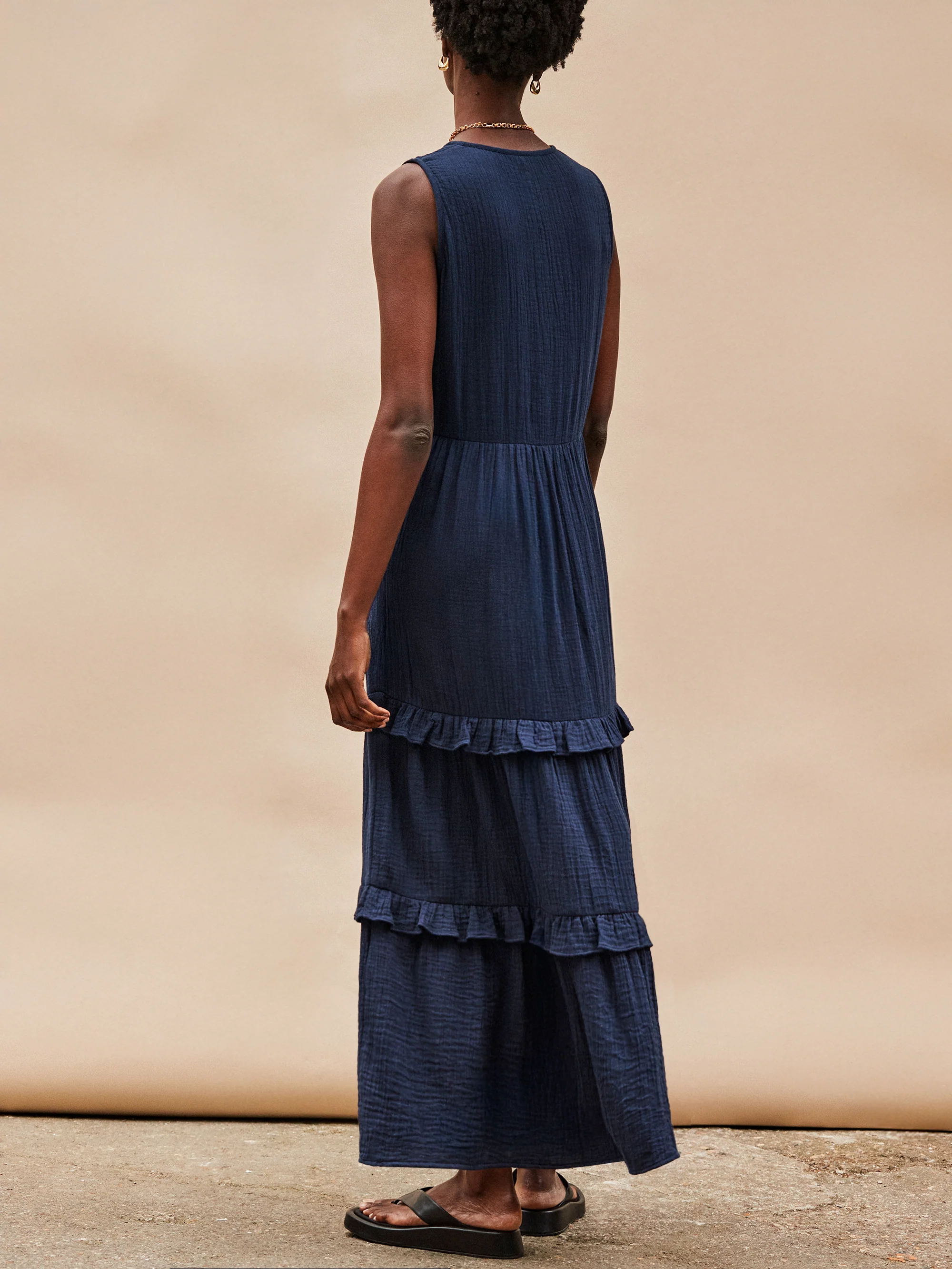 Petite Navy V-Neck Cheesecloth Midaxi Dress