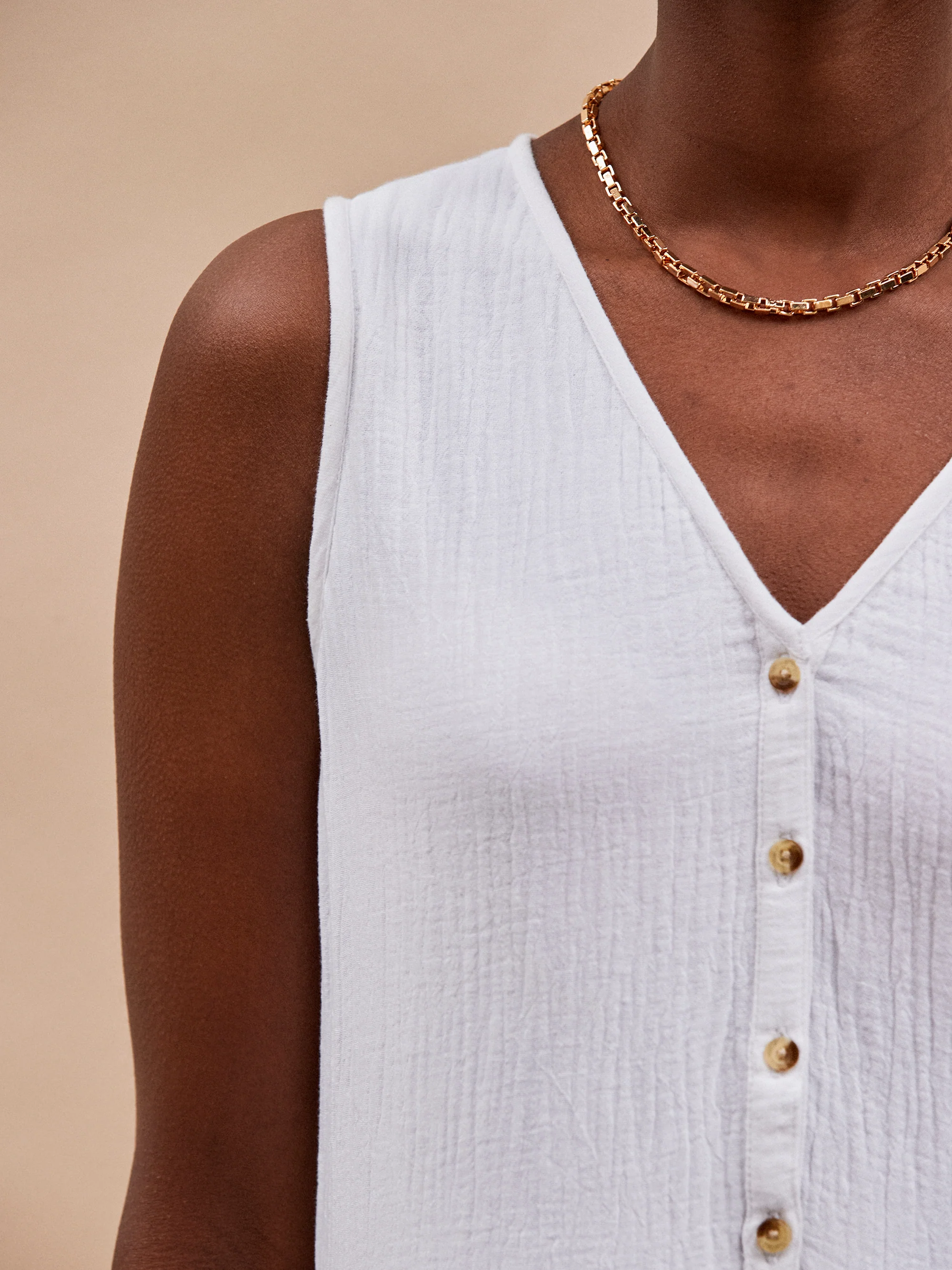 Petite White V-Neck Cheesecloth Midaxi Dress