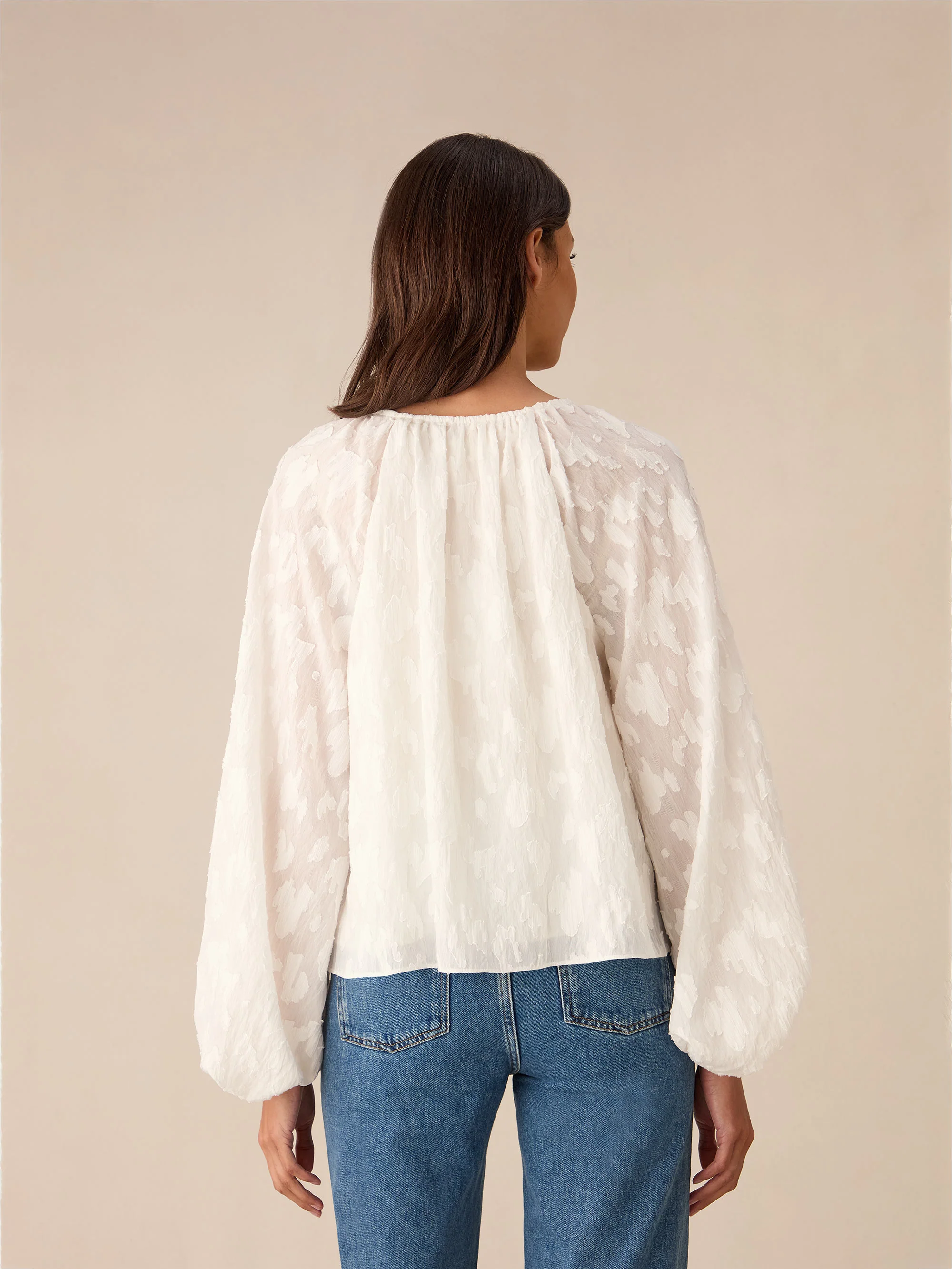 Ivory Leopard Jacquard Blouson Sleeve Blouse