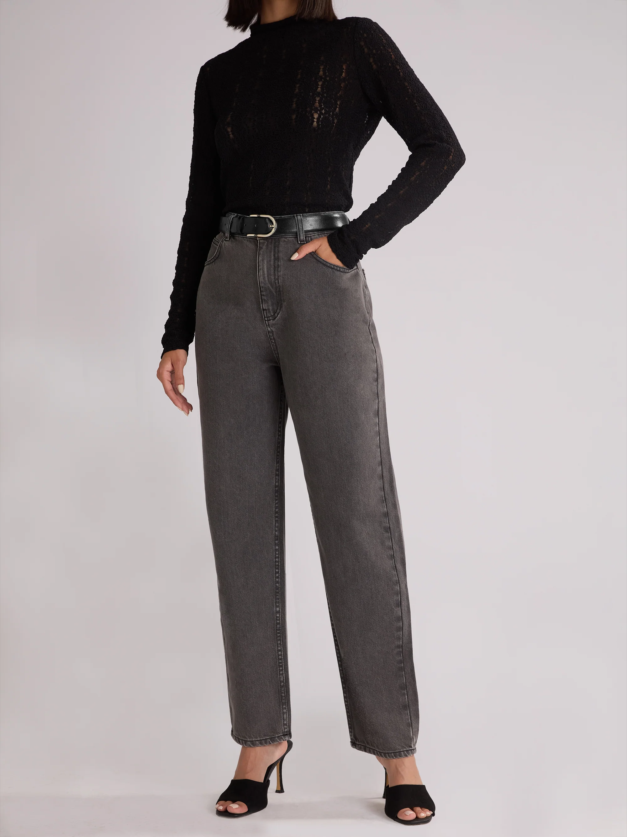 Black Lace High Neck Top
