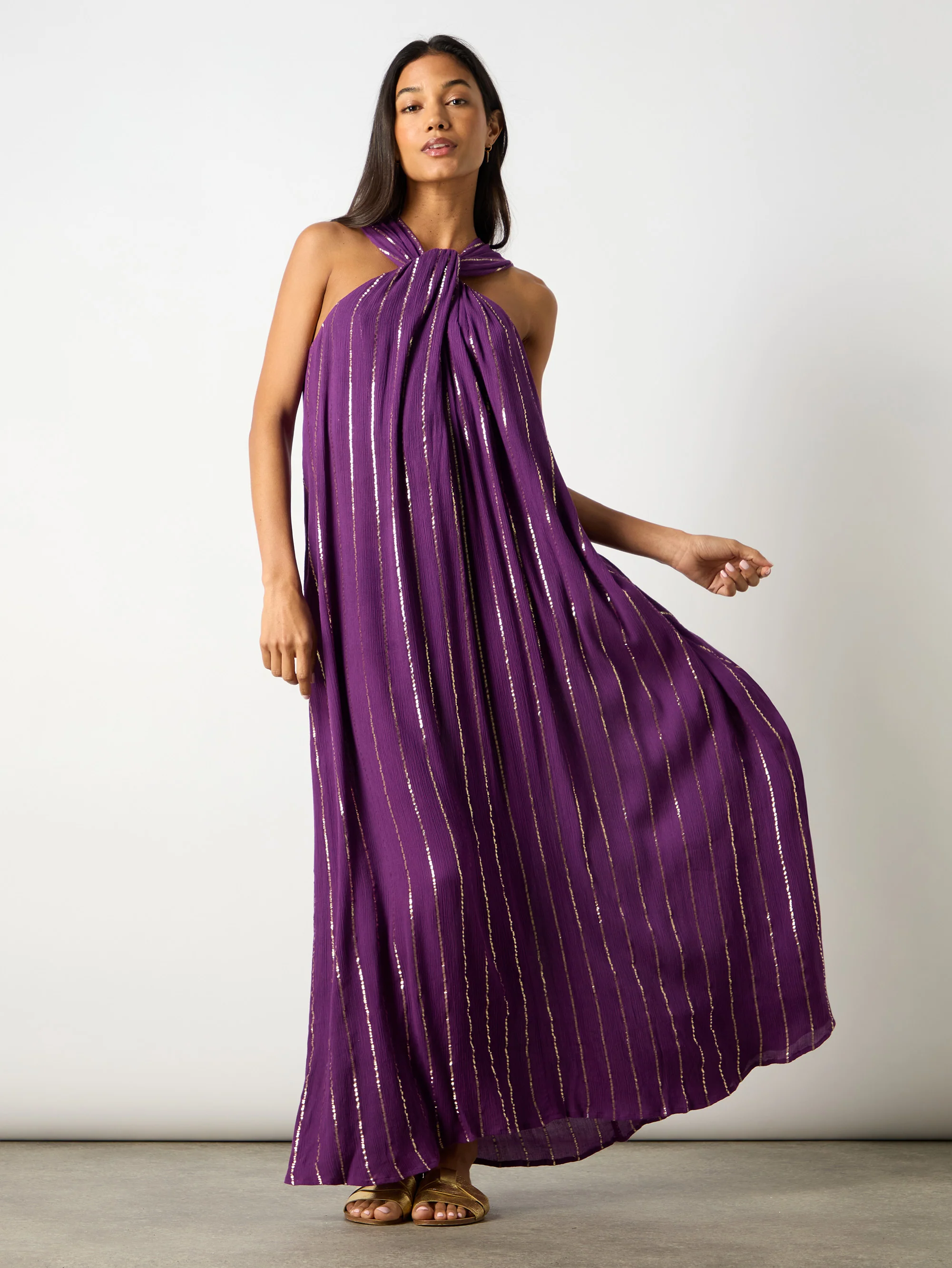 Purple Lurex Twist Neck Maxi Dress