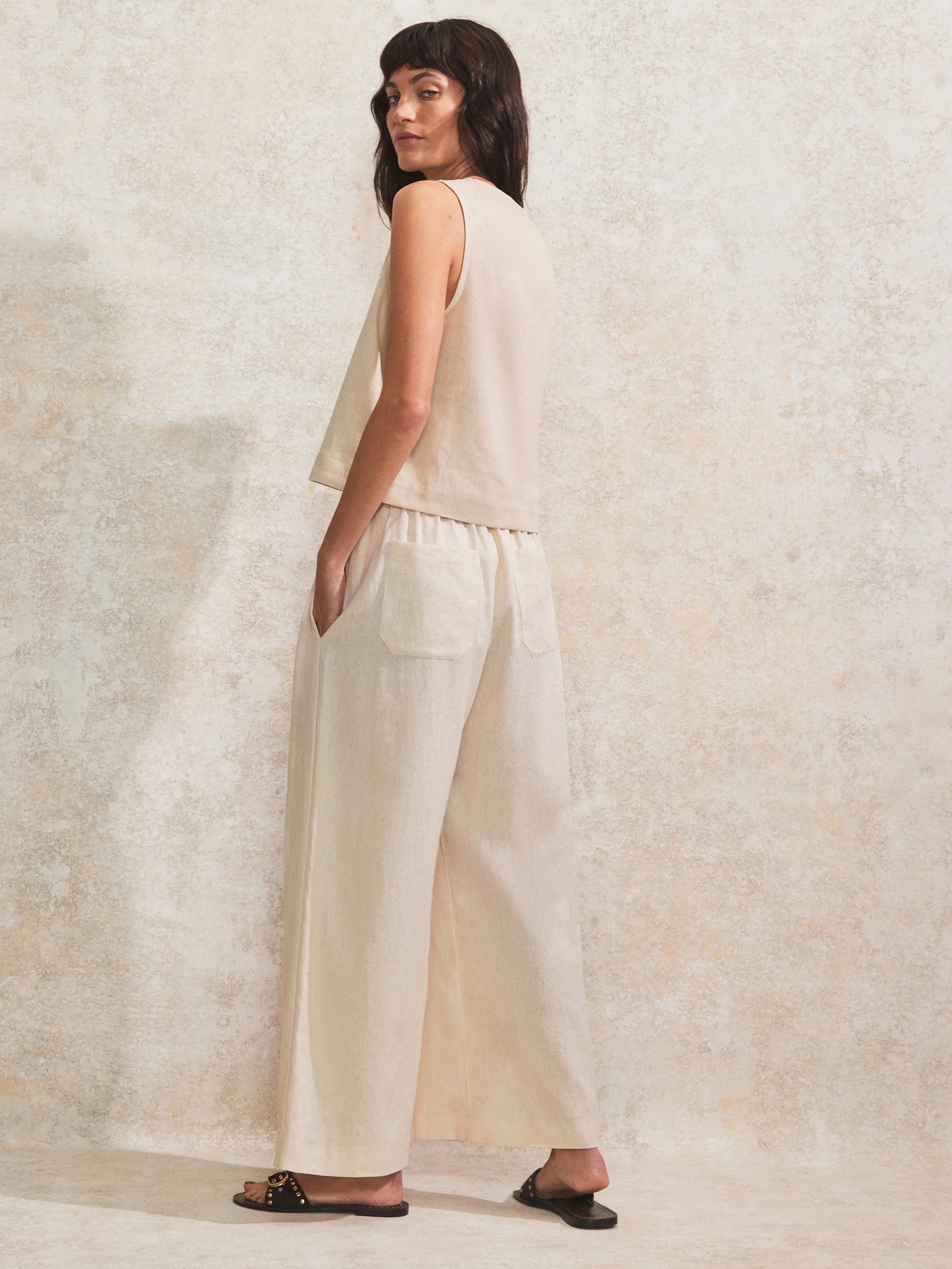 Petite Ecru Linen-Blend Trousers