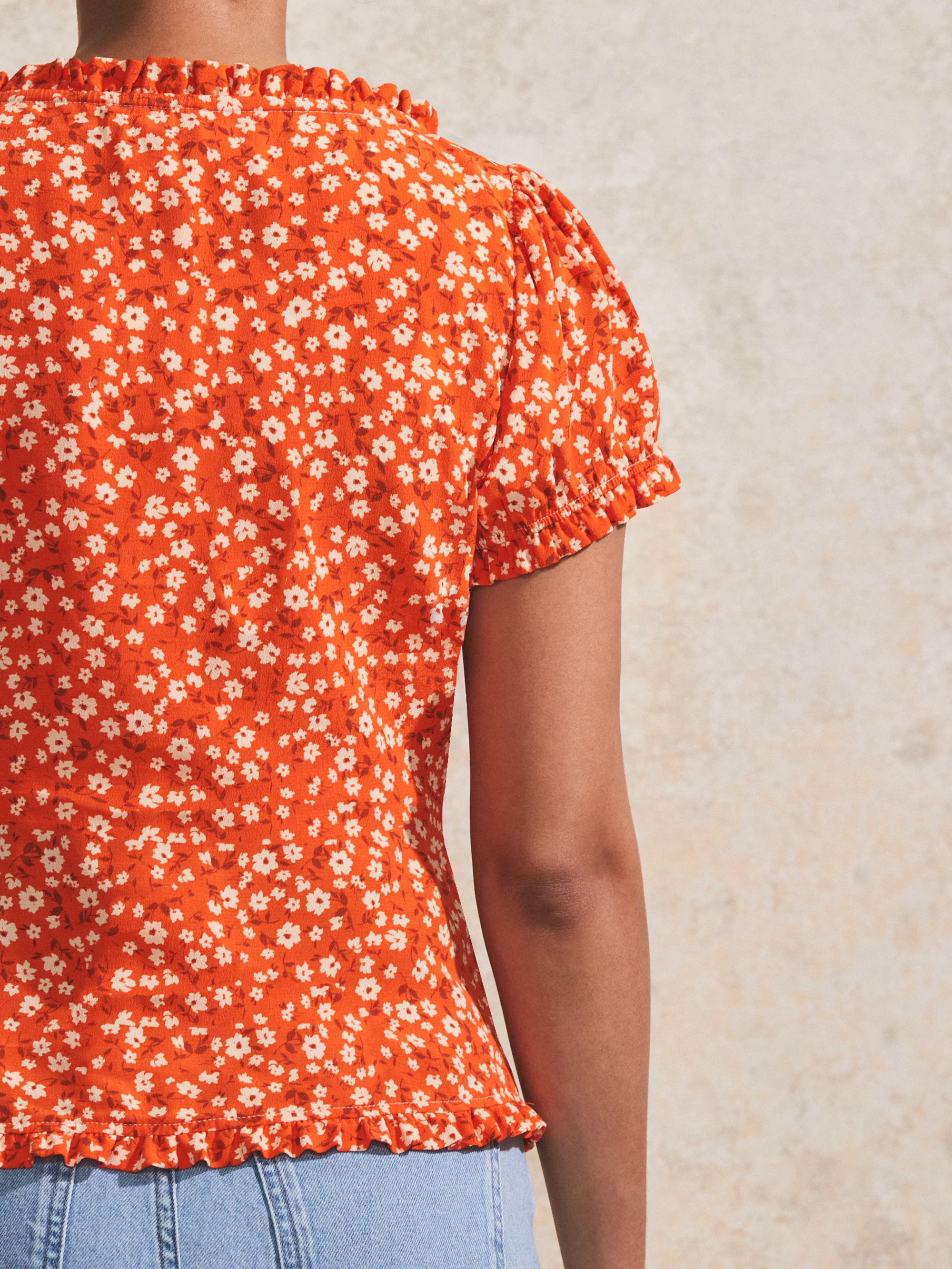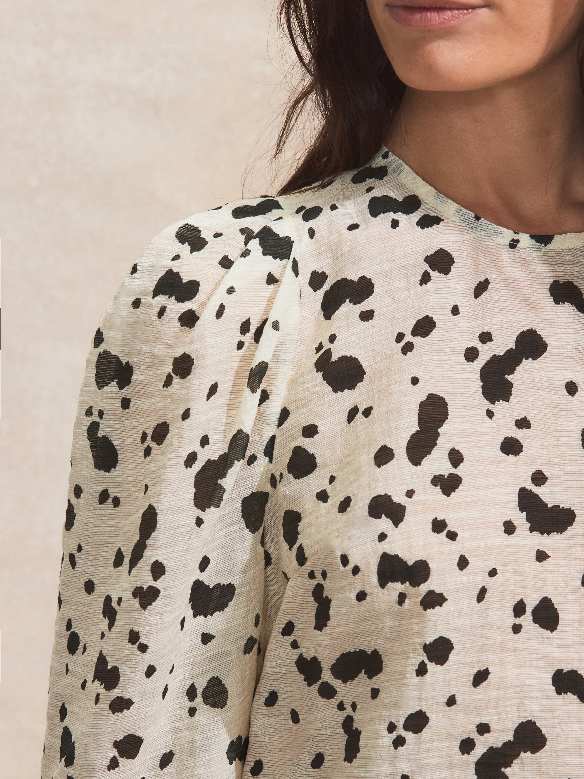 Seraphina Magenta Floral-Print Gathered-Sleeve Dress