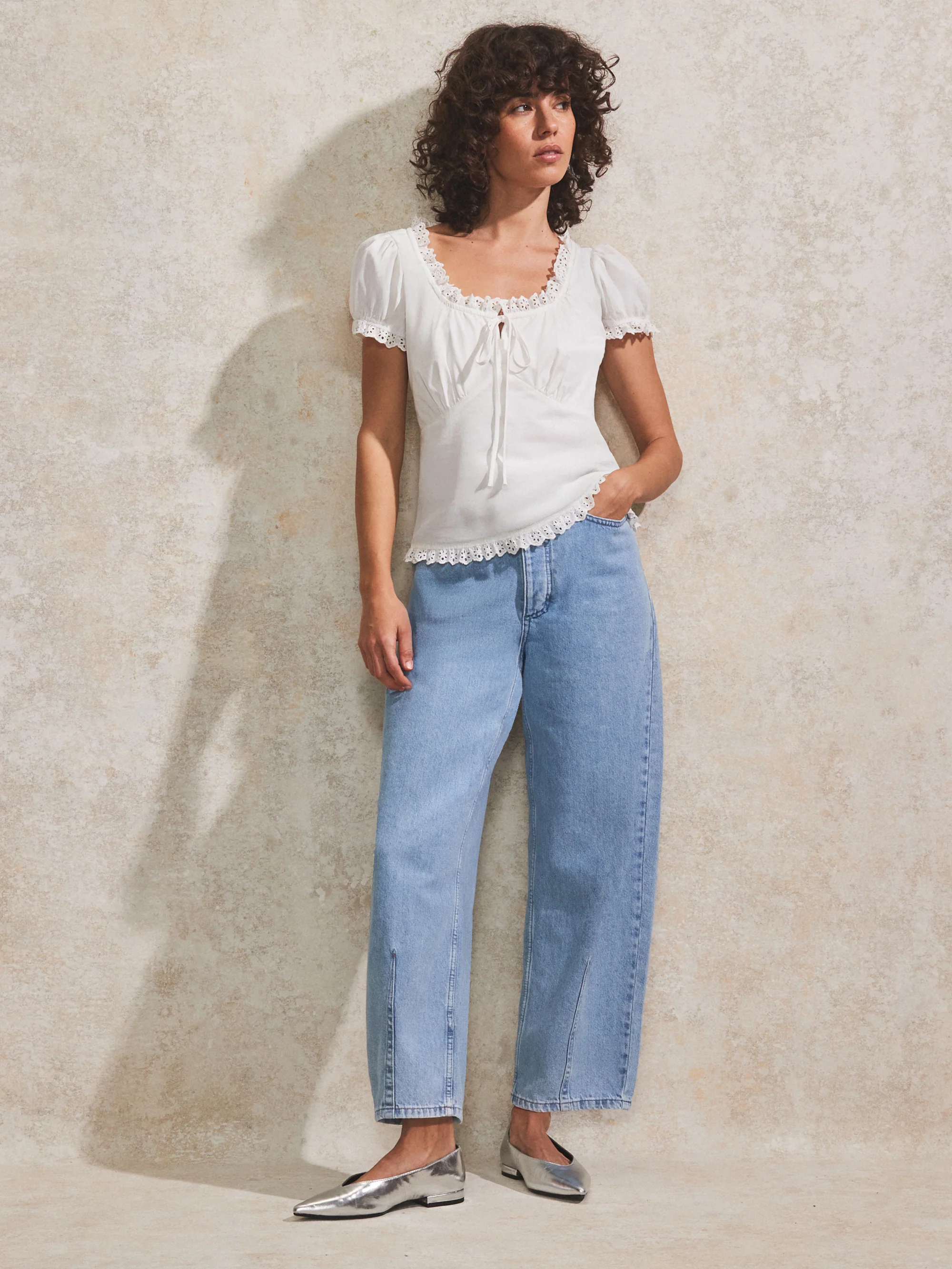 Ivory Pinstripe Linen-Blend Wide-Leg Trousers