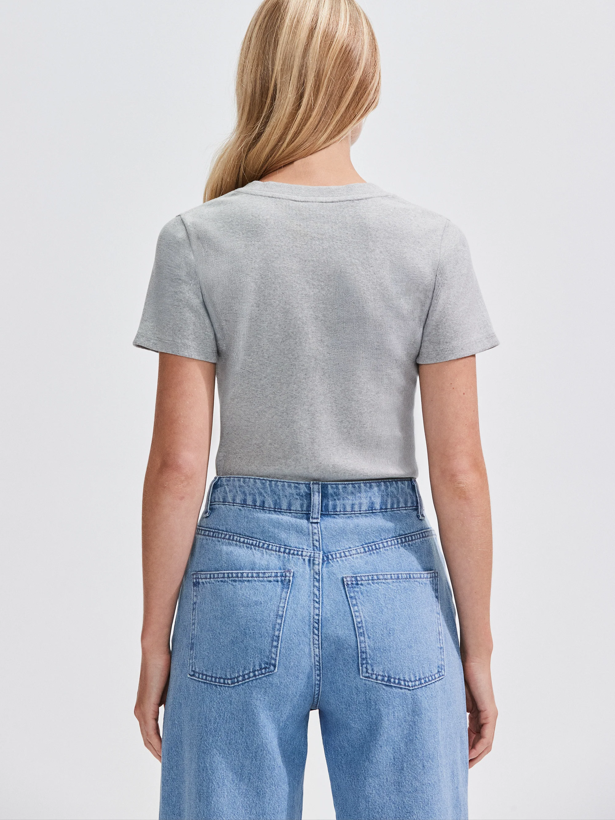 Grey-Marl Premium Rib Fitted V-Neck Tee