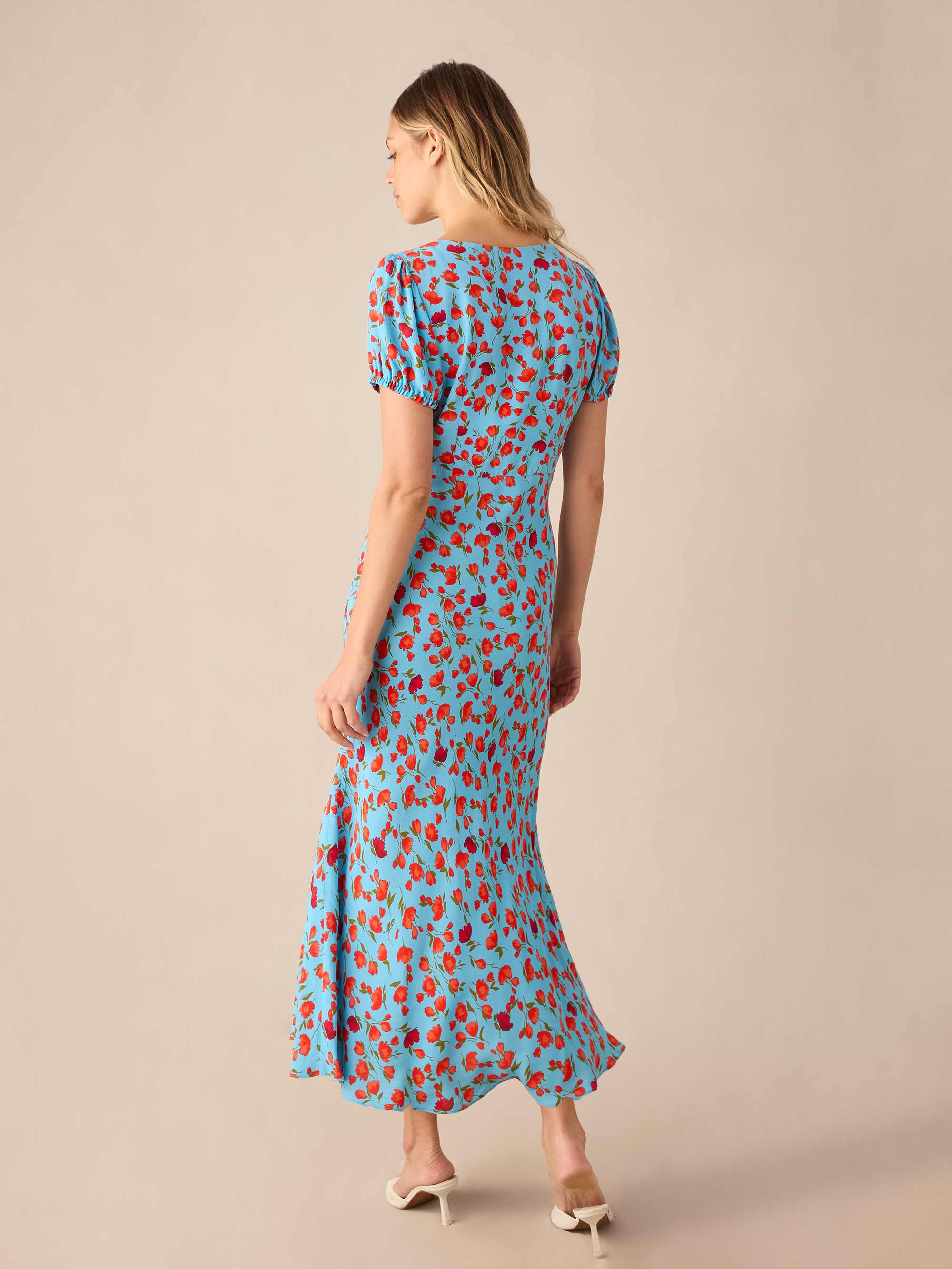 Kirstee Blue Floral Print Ruffle Cami Maxi Dress